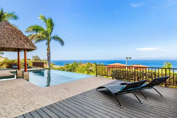Azul Paraiso C8: Indulge in coastal luxury at Azul Paraiso Condo #C8, a prestigious and spacious 3-bed, 2-bath, 2230 sq ft condo designed by renowned architect Garnier. Perched at one of Playa Ocotal's highest points, this residence offers stunning panoramic views of the Papagayo Gulf. At this beautiful condo, you will see incredible views of the Pacific ocean, boats in the bay, and volcanic mountain ranges all the way to Nicragua! Upon entering, you'll be greeted by an oversized wooden front door that opens to an expansive living and dining area bathed in natural light, complemented by a well-appointed kitchen. The condo comes fully furnished and turn key with high-end, solid wood, and custom designed furniture.Off the social areas is a large balcony that offers some of the best views in all of Costa Rica! Here you will enjoy your morning coffee, bask in the sun’s afternoon glow, and wind down the day with an evening cocktail before dinner as you watch the green parrots nest and colors change in the sky as the sun sets. The breezes up here are delightful!A hallway off the social area leads to the bedroom wing. The master bedroom, accessible from both the living room and guest bedroom, boasts an oversized layout with a King bed, a vast walk-in closet, a desk, and a regal bathroom with a luxurious bathtub. The second bedroom offers 2 Queen beds with a trundle, a desk area, and has a shared bathroom with a tub, ensuring comfort and privacy for your guests / family. The third bedroom also features 2 Queen beds with a trundle, a desk area, custom closets, ensuring every inch of this residence exudes opulence. This condo comfortably sleeps 10 people! It would be a wonderful rental property or great to host friends and family.Step outside onto the expansive balcony, accessible from both the living room and master bedroom, offering a seamless indoor-outdoor living experience. This outdoor haven overlooks the community pool, creating a perfect space for entertaining or savoring moments of tranquility. Guanacaste boasts a paradise of perpetual warmth and sunshine, where every day is a celebration of the sun-drenched landscapes and blissful tropical weather.Azul Paraiso offers 5 stand-alone condominium buildings, each housing 4 to 6 units. Privacy is paramount, with each building featuring its own shared pool, all surrounded by lush landscaping. The community also ensures convenience with a helipad and 24-hour security, providing a tranquil coastal haven.Playa Ocotal is a short 5 minute drive away downhill. It is known for its calm, clean bay, great for snorkeling and swimming. It is home to the well-known Father Rooster beachfront restaurant and hosts fishing boats in the bay. A 15-minute drive brings you to Playas del Coco, a bustling hub with restaurants, shops, and entertainment. With proximity to LIR, Liberia International Airport (45 mins), Azul Paraiso seamlessly combines comfort, sophistication, and unparalleled ocean views, inviting you to experience luxury living on Costa Rica's Pacific coast. Call us today for a viewing! We would love to show you this perfect property in Paradise!