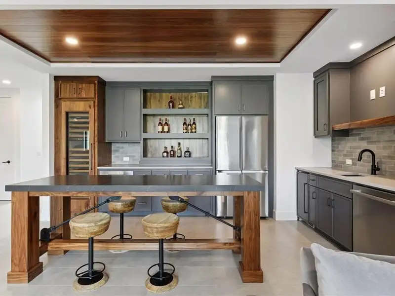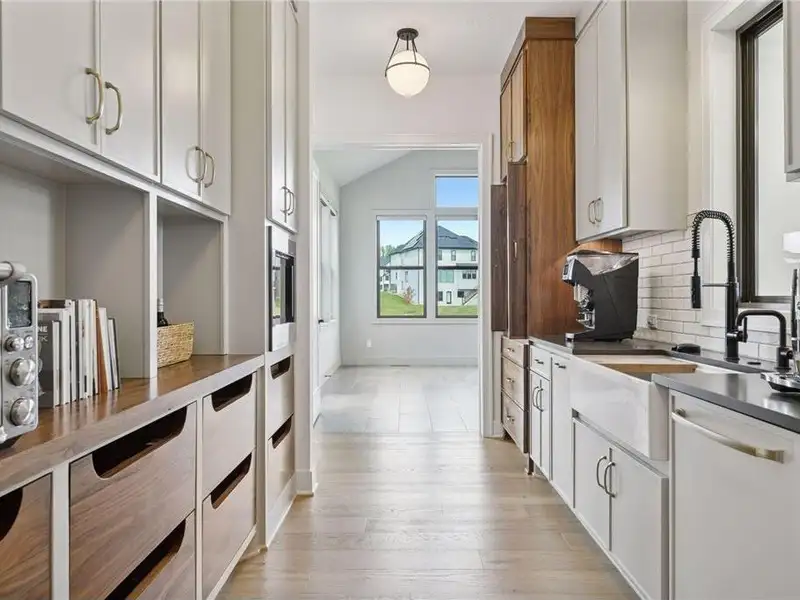 - Chef’s kitchen with Wolf range and paneled refrigerator