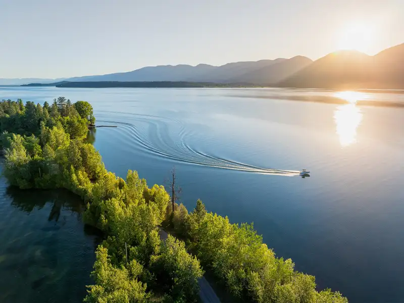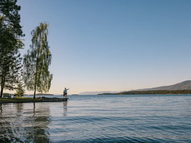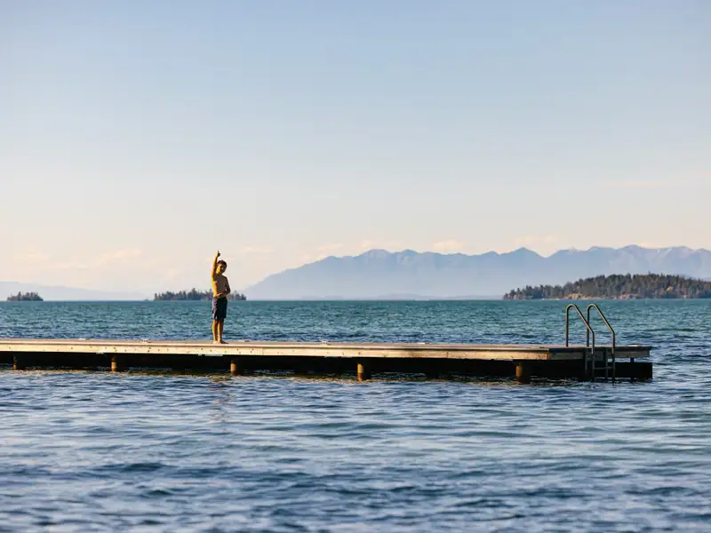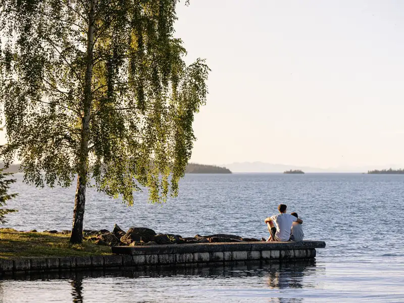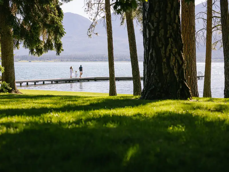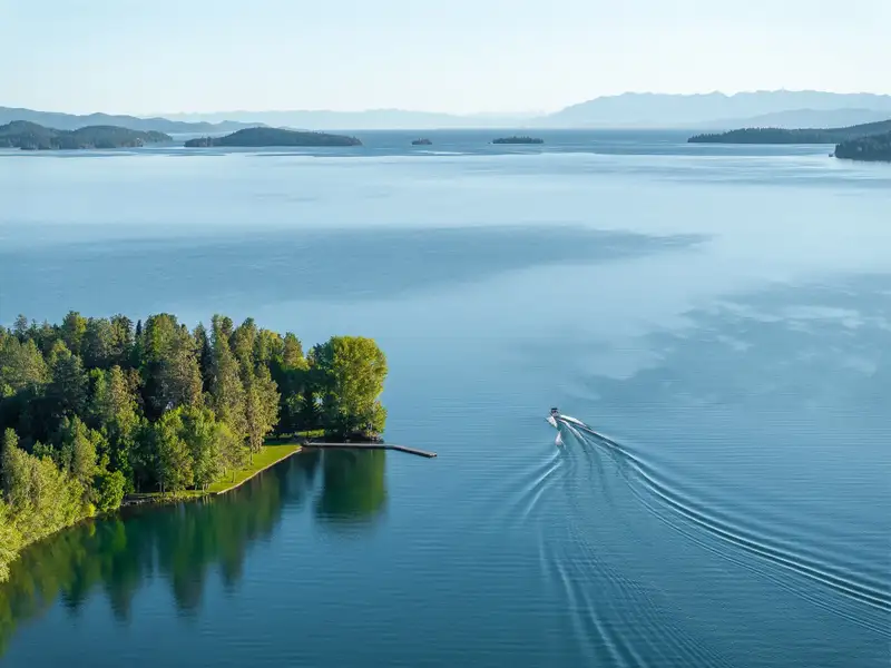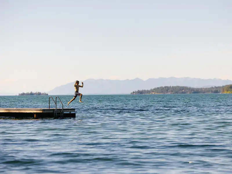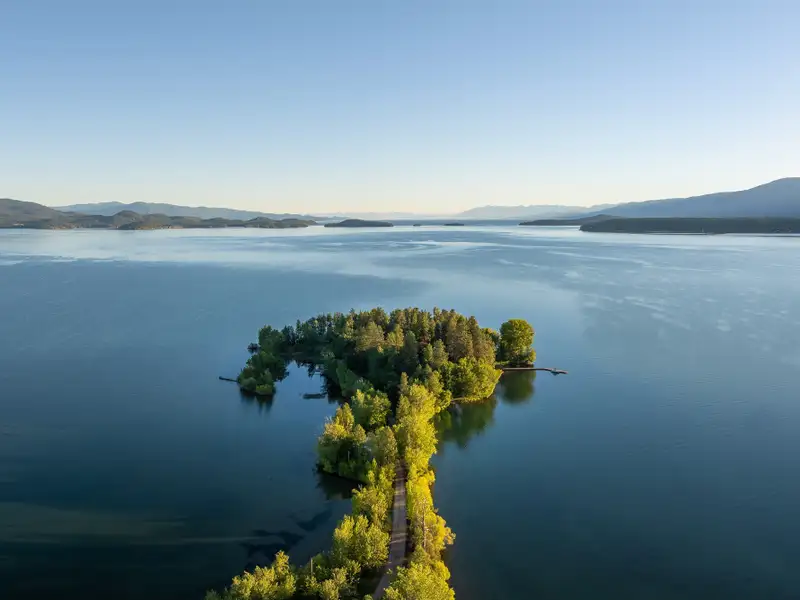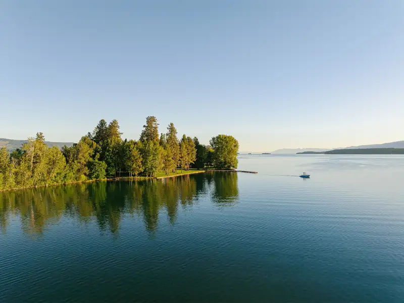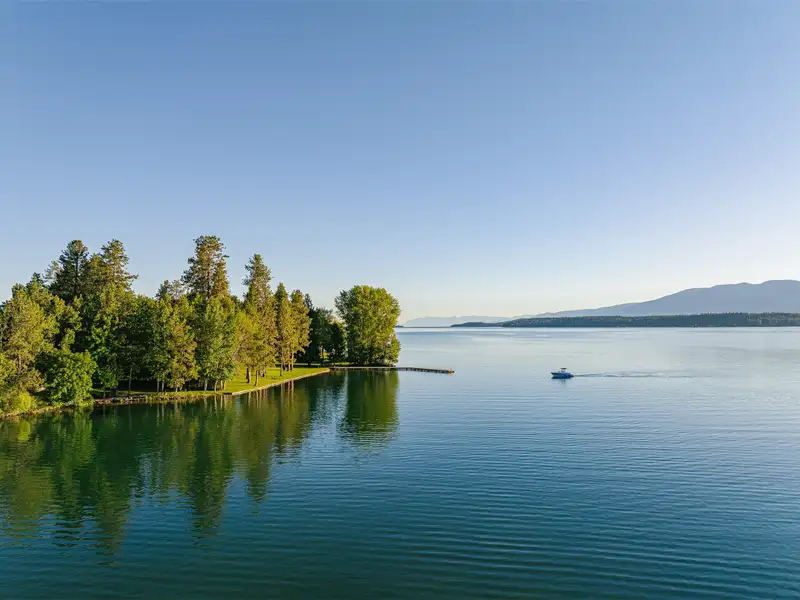 - Gentle shoreline ideal for swimming
