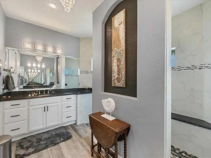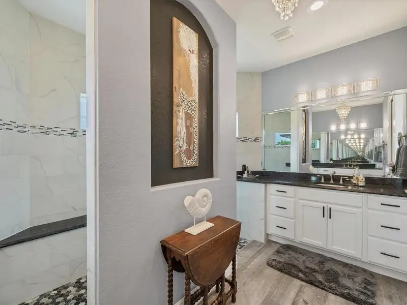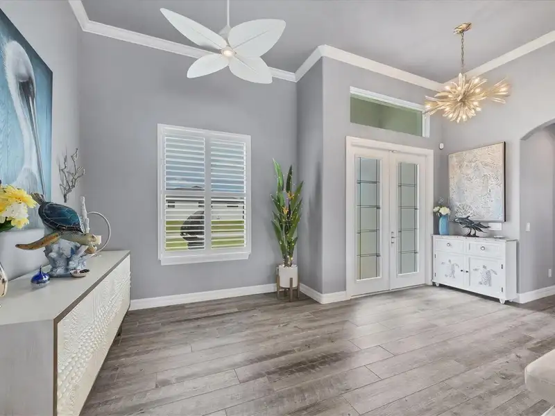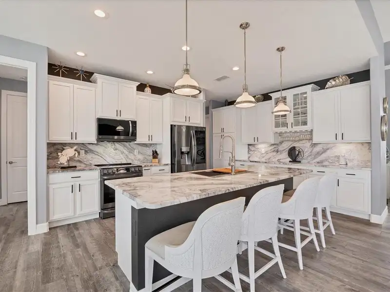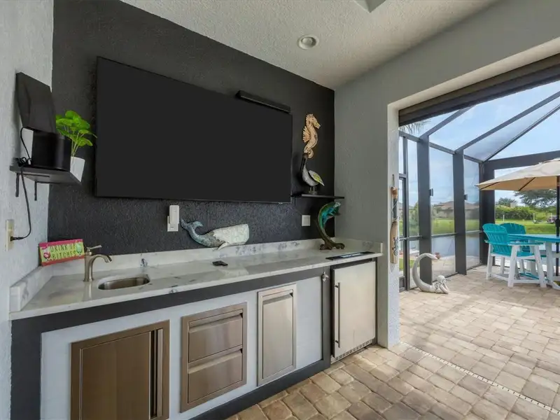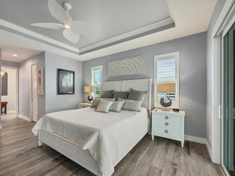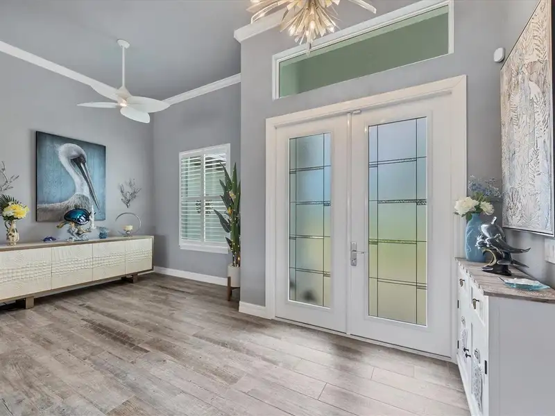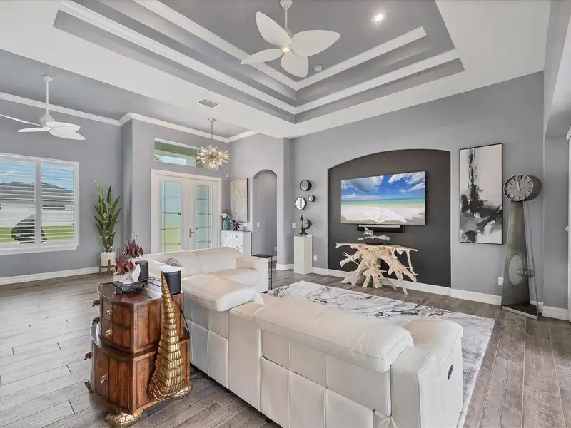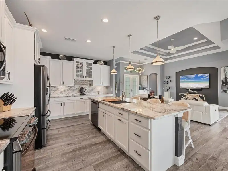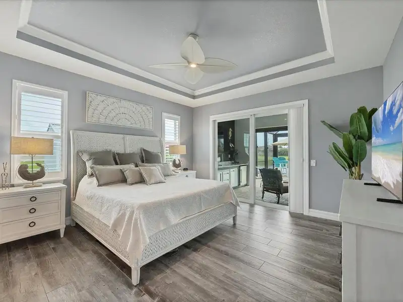 Welcome to coastal perfection in this exceptional custom-built waterfront home, nestled in the coveted South Gulf Cove community. This magnificent residence sits gracefully on a rare double lot, boasting an impressive 213 feet of waterfront, complete with two private docks, a 10,000 lb boat lift, and easy access to open water — your gateway to Boca Grande, Gulf beaches, and world-class fishing. Step into elegance through custom hurricane-rated double doors, where a grand open floor plan unfolds before you. Designed for both everyday living and sophisticated entertaining, this home is filled with natural light, highlighted by zero-degree corner sliders that completely disappear — seamlessly blending indoor and outdoor living. Imagine sunset cocktails on the expansive lanai, dips in the heated saltwater pool, and gatherings under the stars. The pavered driveway wraps gracefully around the home all the way to the docks, creating a stunning entrance and effortless functionality. For the culinary enthusiast, the gourmet kitchen is a dream: a center island, upscale stainless steel appliances, rich granite countertops, and cabinetry that’s as beautiful as it is functional. The great room features soaring 14-foot tray ceilings — adding to the drama and spaciousness of this thoughtfully designed floor plan. The master suite is your private retreat, with hurricane-rated sliders that open to the pool and water views. Indulge in a spa-like en suite bathroom with dual vanities and generous walk-in closets. Two additional guest bedrooms, positioned on the opposite wing of the home, offer peaceful privacy for family or visitors. Need space for the toys? You'll love the 15x48 RV garage, built to accommodate your biggest adventures — boats, campers, or collector vehicles — with plenty of room to spare. Top it all off with peace-of-mind upgrades: hurricane-impact windows and doors, reinforced garage doors, and a brand new roof (2025). Every detail of this home has been meticulously crafted for luxury, safety, and comfort. Paradise is calling. Schedule your private tour of this one-of-a-kind waterfront estate and experience what it feels like to live the Florida dream — in true million-dollar style.