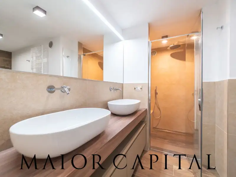 The villa stands out for its spacious private garden, which blends harmoniously with the surrounding landscape. The typical Mediterranean vegetation, local stone walls, and carefully maintained flower beds make this outdoor space an oasis of tranquility. Modern irrigation and outdoor lighting systems ensure the perfect maintenance of the greenery and natural beauty.