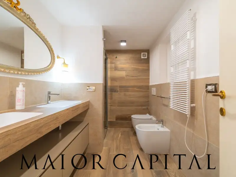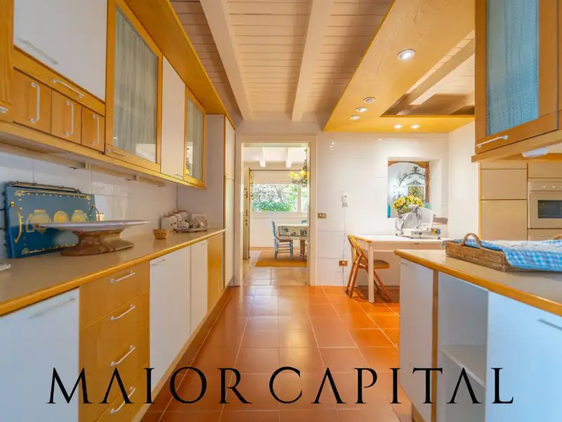 The basement is dedicated to the sleeping area and offers generous and well-distributed spaces. Here are seven bedrooms, five bathrooms, two rooms used as walk-in closets, a service kitchen, a laundry room, and a cellar. The large and well-divided spaces make this villa perfect for hosting a large family or welcoming guests in complete privacy and comfort.