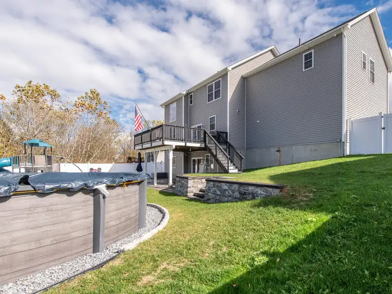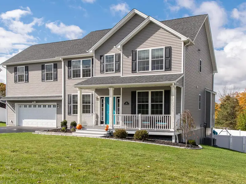 Welcome to Stratford Farms An enclave of modern luxury. Built in 2018 and pristinely maintained, this 4 bedroom 2.5 bath Colonial in the acclaimed Arlington School District offers a seamless fusion of style, sophistication, and high end comfort. From the inviting rocking-chair front porch to the rich walnut-toned hardwood flooring throughout, this home exudes warmth and quality at every turn. The first floor features a formal living/flex room and a formal dining room, ideal for entertaining or a home office setup. The open-concept kitchen and family room are the heart of the home - enjoy the cozy gas fireplace with custom remote-control blinds, and a gourmet kitchen boasting a massive center island, stainless steel appliances, and granite countertops with a unique leathered finish. Sliding glass doors lead to a spacious 16x20 deck, perfect for outdoor gatherings. Convenient access from the two-car garage into the kitchen with minimal steps - adds ease to everyday living. A stylish half bath completes the main level. Upstairs, the primary suite impresses with a large walk-in closet and a luxurious ensuite bath featuring an oversized walk-in shower and double-sink vanity with granite countertop. Three additional bedrooms offer generous space, complemented by a full hallway bath with tub/shower combination and a dedicated laundry room with utility sink. A full, unfinished walkout basement provides endless possibilities for future expansion perfect for recreation room, home gym or media space. With high ceilings, backyard access, and abundant storage this level combines flexibility with functionality. Youll love the extras! - custom blackout blinds throughout, recessed lighting, central air, an Energy Star Navien hydronic boiler, and so much more. Enjoy outdoor living on the brand new paver patio or take a dip in the 21-foot round saltwater pool - all within your own private, fully fenced backyard oasis. The home is also hardwired for an alarm system with full property radius cameras for added peace of mind. With natural gas, municipal water, and community sewer, this home checks every box. Just minutes to Adams Fairacre Farms, East Dale Village, The Empire State Rail Trail and the Taconic State Parkway. This move-in-ready home combines comfort, privacy, and modern amenities - perfect for todays lifestyle!