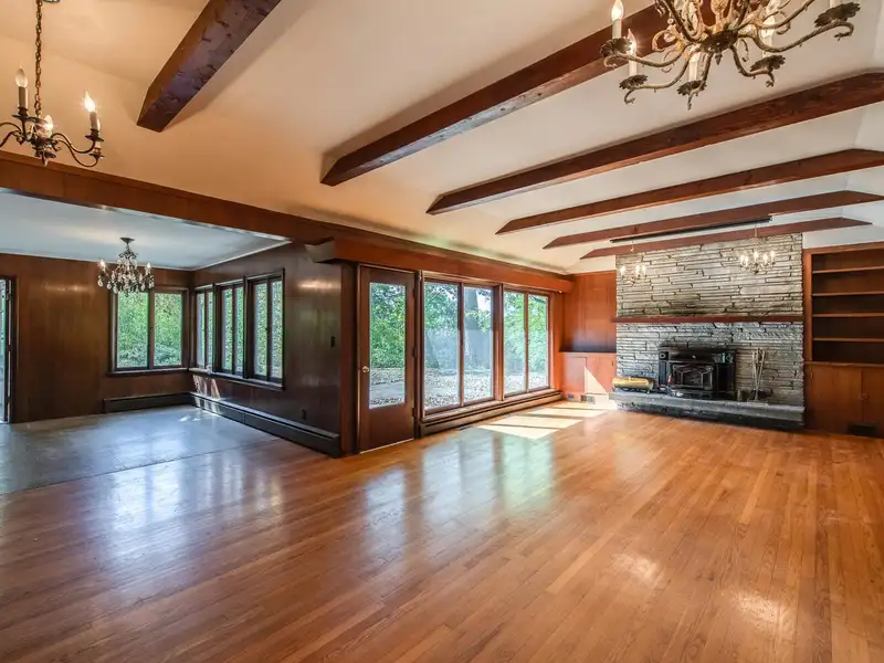 Nestled in complete privacy on 3.25 acres and surrounded by nature, this extraordinary mid-century modern home offers some of the most spectacular views youll find anywhere in the Hudson Valley. Designed to embrace light, space, and scenery, this 4 bedroom, 3.5 bath retreat perfectly blends timeless architecture with modern comfort. Gleaming hardwood floors and beamed ceilings highlight the stunning main level, where warm wood paneling and expansive windows create a seamless connection to the outdoors. The open-concept living and dining areas feature a gorgeous stone fireplace and flows effortlessly onto a large bluestone patio - perfect for entertaining while soaking in the breathtaking vistas. The spacious eat-in kitchen offers abundant cabinetry, a double sink, stainless steel appliances, and plenty of workspace. The expansive first-floor primary suite is a true sanctuary, featuring a private sitting room or den/flex space and a beautifully updated spa-like bath with marble flooring, double sinks, a massive walk-in shower, and exquisite tile work. A charming three-season room and a convenient half bath complete the first floors thoughtful layout. Upstairs, youll find three additional generously sized bedrooms, including a private princess suite with its own full bath, separate entrance, and deck with hot tub - ideal for guests or multi-generational living. A third full bath serves the remaining bedrooms. The walkout lower level offers a spacious family room, perfect for relaxing or entertaining, as well as a large utility/laundry room with stainless steel washer & dryer and workshop area. Outdoor living shines here with a 20 x 40 inground pool, a quaint pool house, and multiple seating areas designed to take in the panoramic views. Additional features include central air on the main level, a two-car garage with automatic doors, and ample storage throughout. Private, peaceful, and architecturally striking - this one-of-a-kind property captures the essence of mid-century modern living while offering modern luxuries and views that will take your breath away. Just minutes to the Arlington Town Center, Vassar Hospital, Mid-Hudson Regional Hospital, Vassar College, Marist College, The Culinary Institute of America, Poughkeepsie Train Station (Metro North), the Bardavon Performing Arts Center and Poughkeepsie's thriving culinary and arts scene. Dont miss this truly special home.