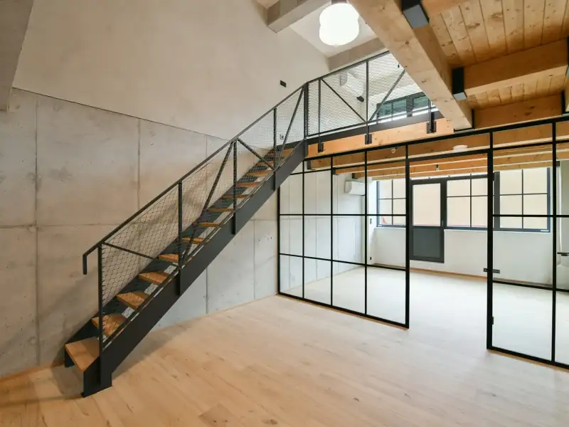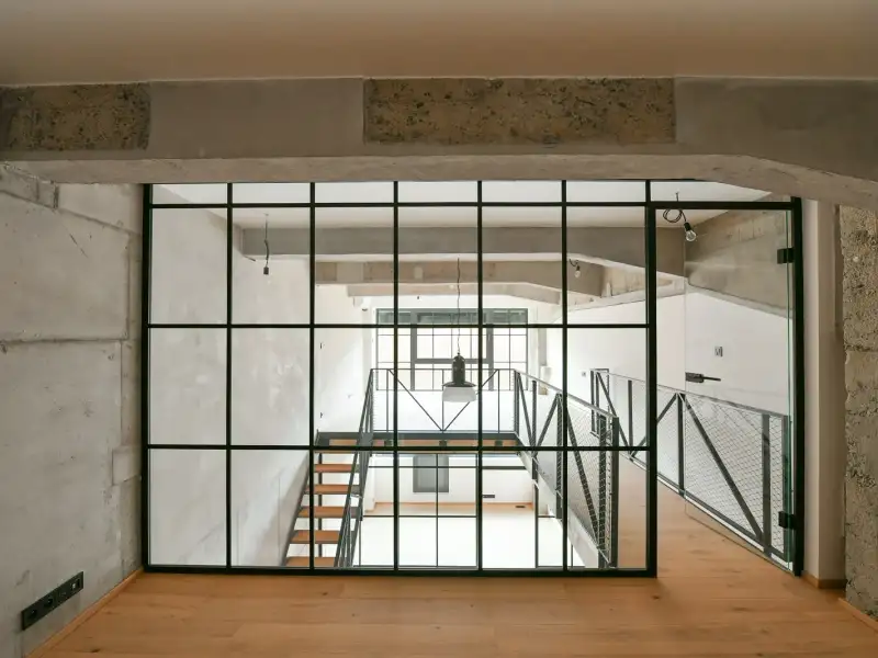 ● soundproof large-format windows creatively referring to the industrial history of the location