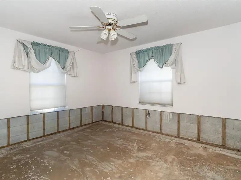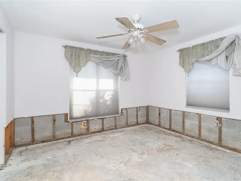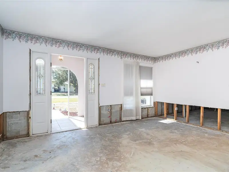 - Drywall removed above waterline