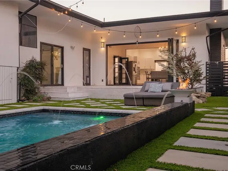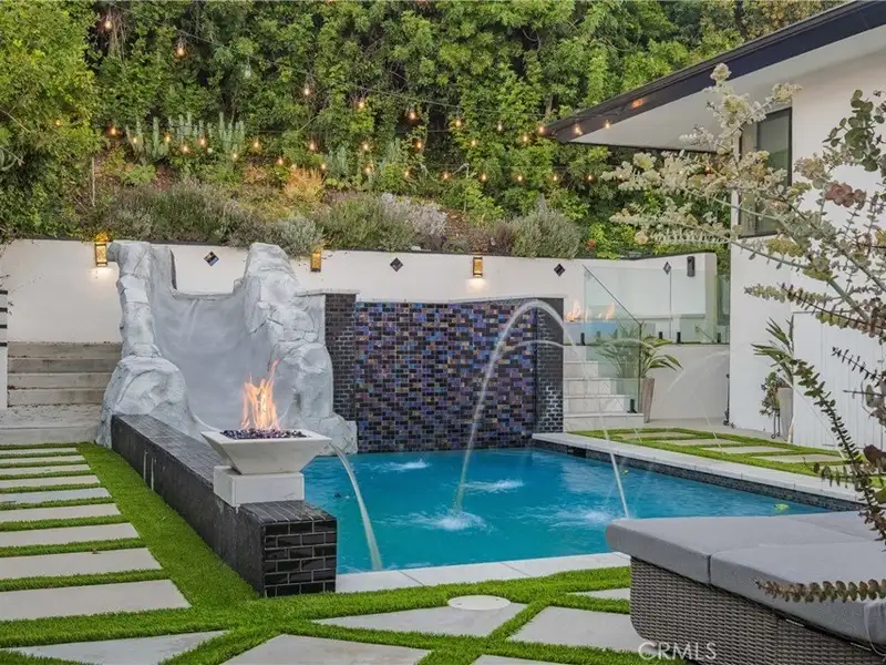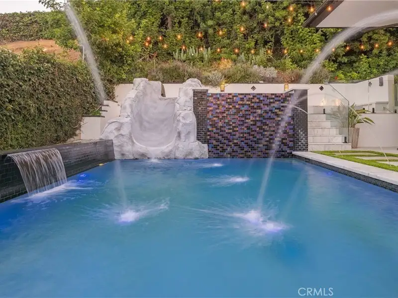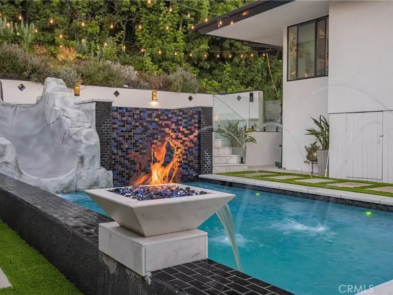 - Pool with spa, waterfall slide, and fire features