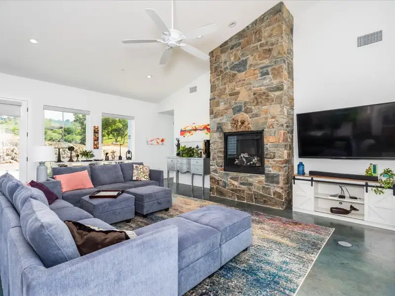- Fireplace with property-sourced rock surround