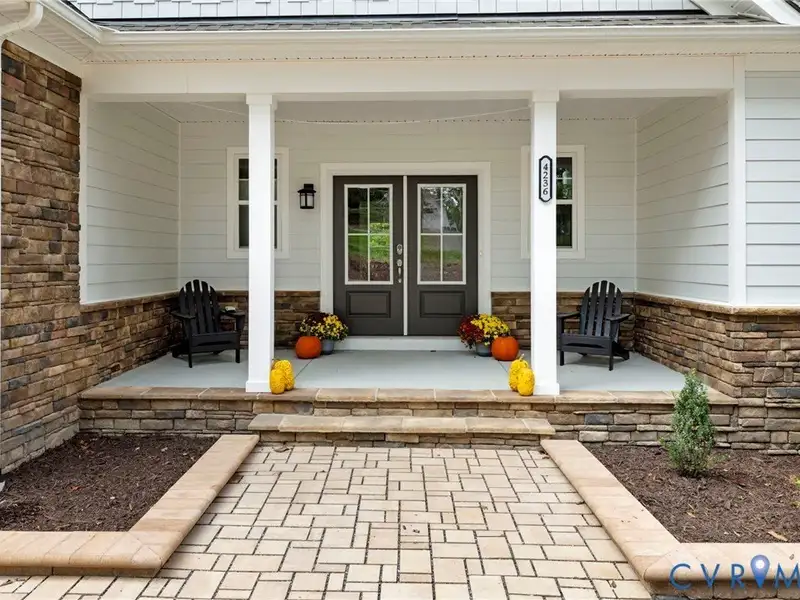 - Paver driveway and stone exterior