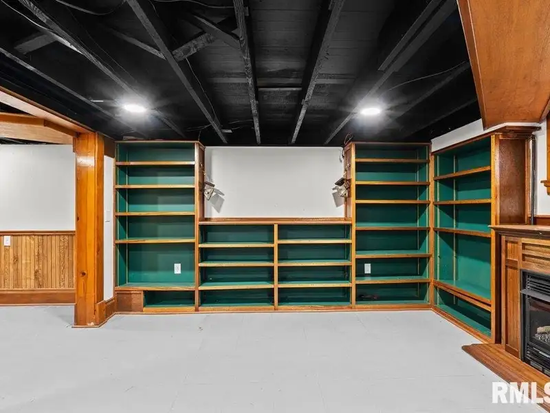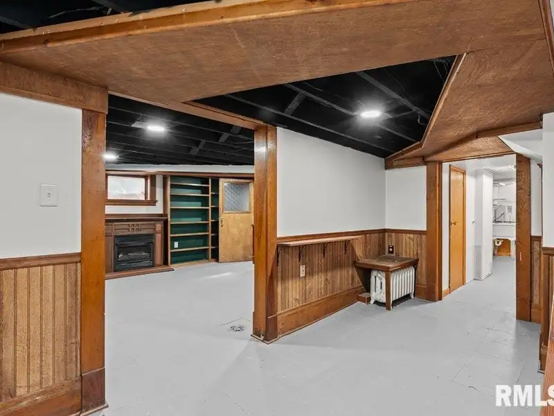 - Finished basement with gas log fireplace