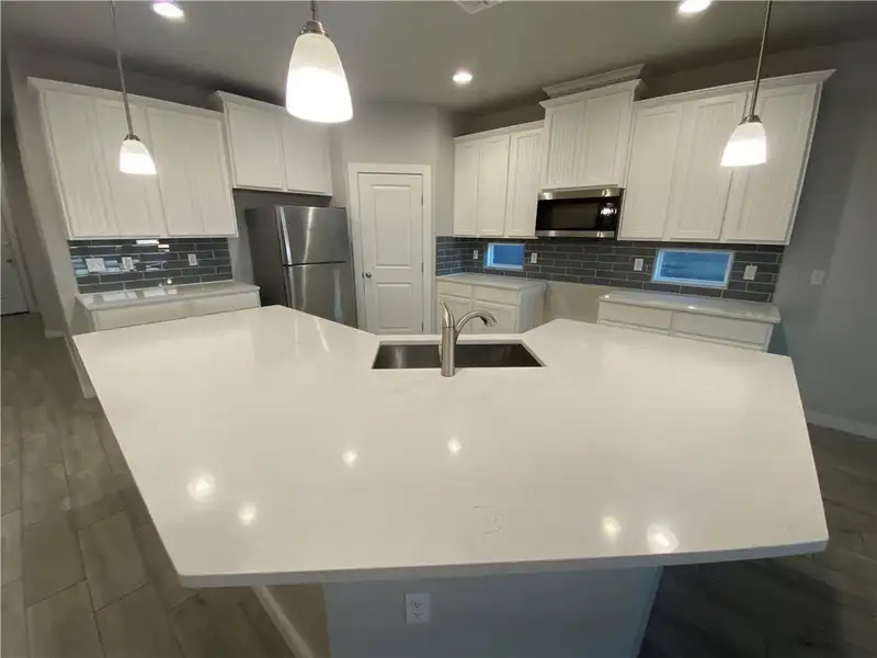 - Updated countertops and tile backsplash
