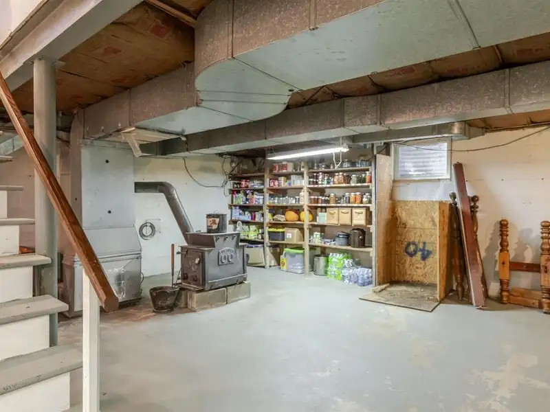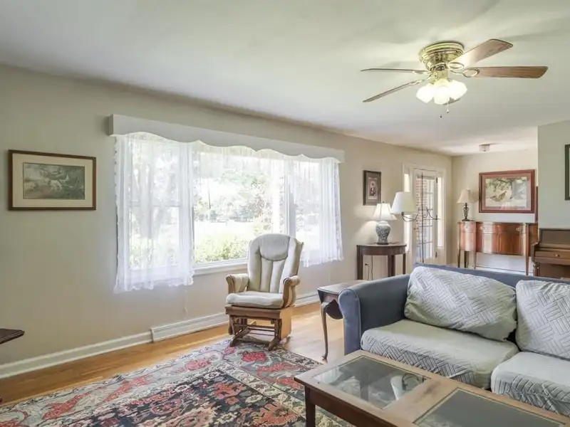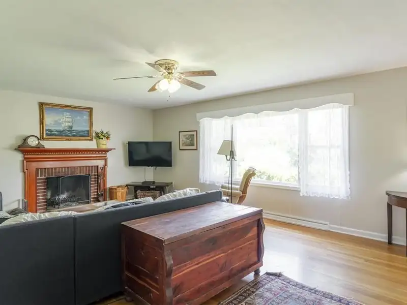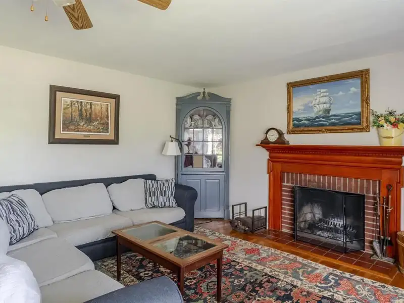 - Living room with wood-burning fireplace