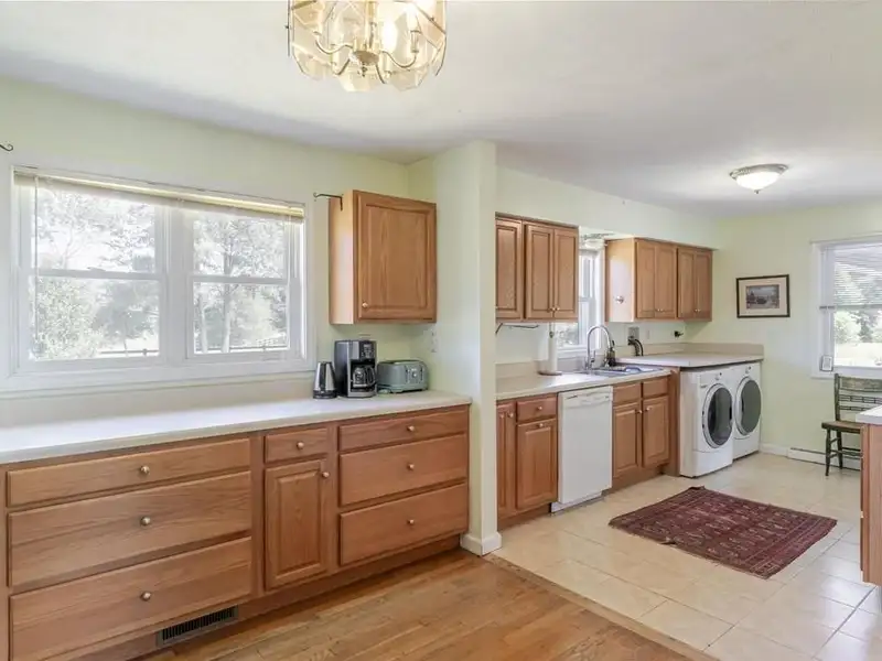 - Spacious kitchen with oak cabinets