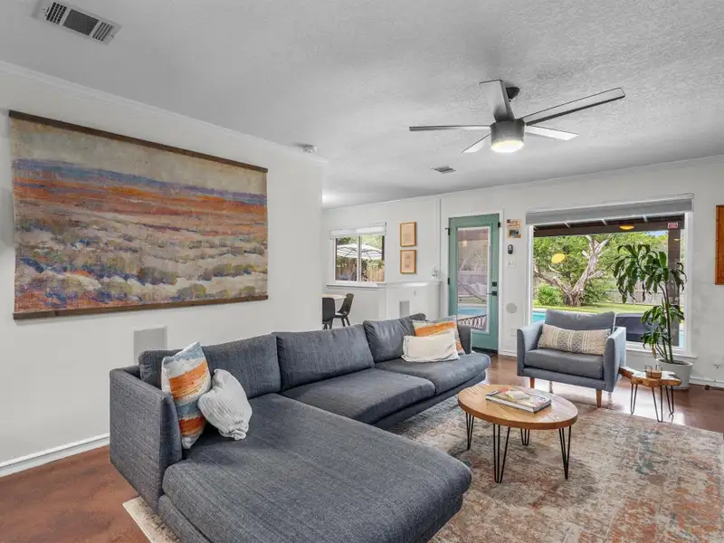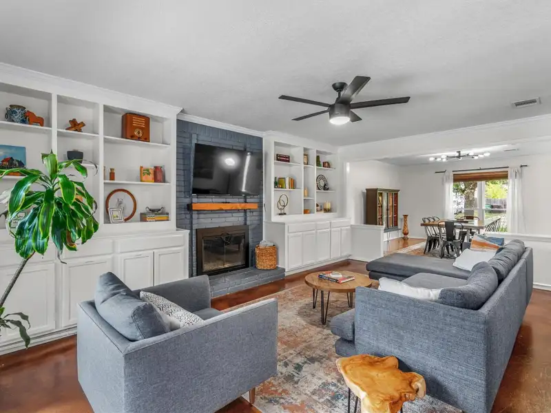 - Multiple living areas including fireplace room