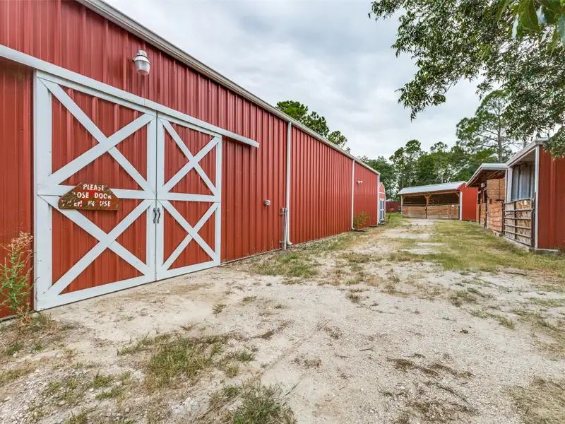 - Lighted indoor arena with sliding doors