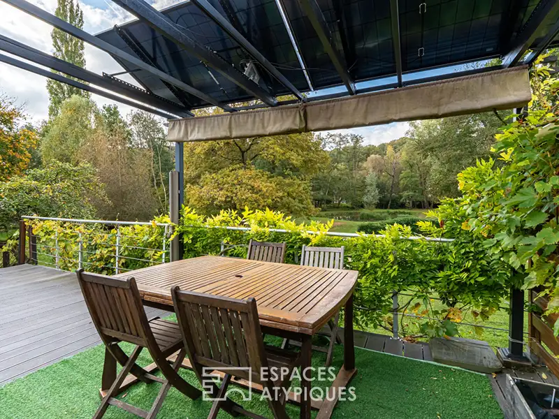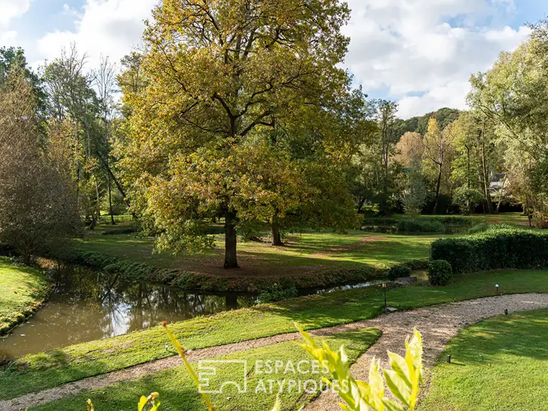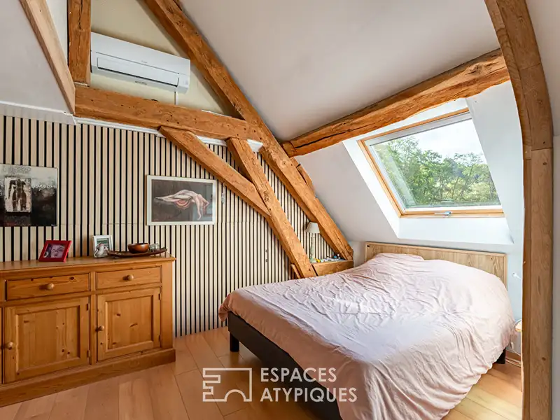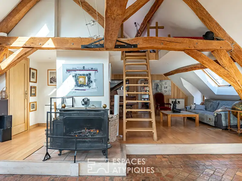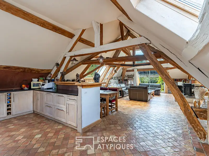 Located in Saint-Hilarion, in the heart of a former mill steeped in history, this atypical 165 sqm apartment occupies the first and top floors of a property composed of four apartments. A unique location, between heritage and nature, just a few minutes from Rambouillet. Bathed in light and facing greenery, it seduces with its private entrance, its independent staircase, and its south-facing suspended terrace. A true cocoon within a bucolic environment, it elegantly combines old-world charm with unexpected volumes.