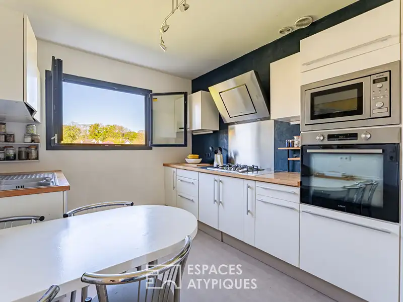 The visit begins on the garden level with a neat entrance leading to a fully equipped independent studio, perfect for welcoming a loved one, a teenager, or for carrying out a professional activity.