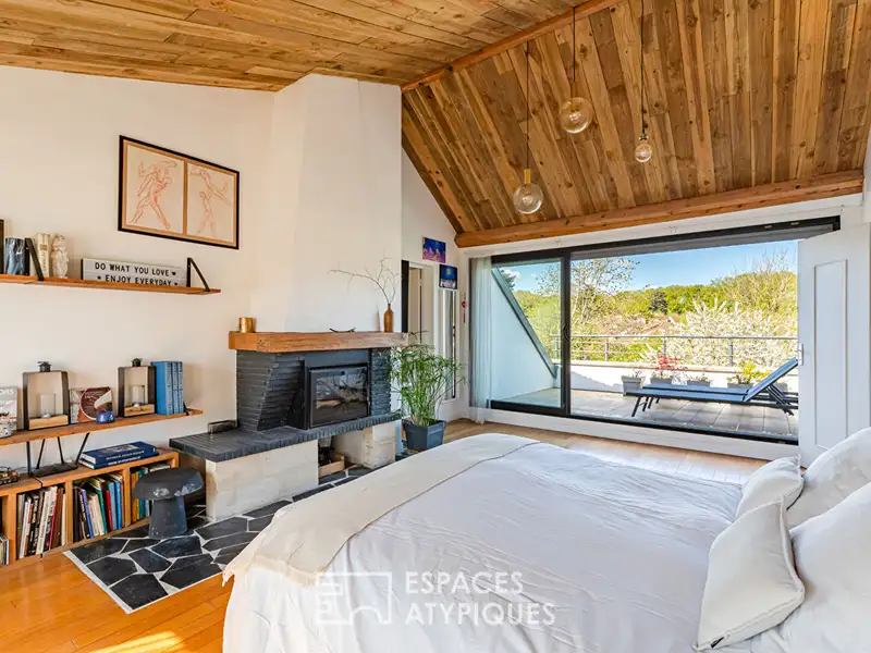 On the upper floor, the master suite seduces with its generous volumes, two dressing rooms, an office, a bathroom, and a terrace with panoramic views of the valley. Extensive renovation work has been carried out since 2017 to provide this house with modern comfort and a warm atmosphere: reinforced insulation, aluminum windows, redone and insulated roof, condensing boiler, redone electricity.