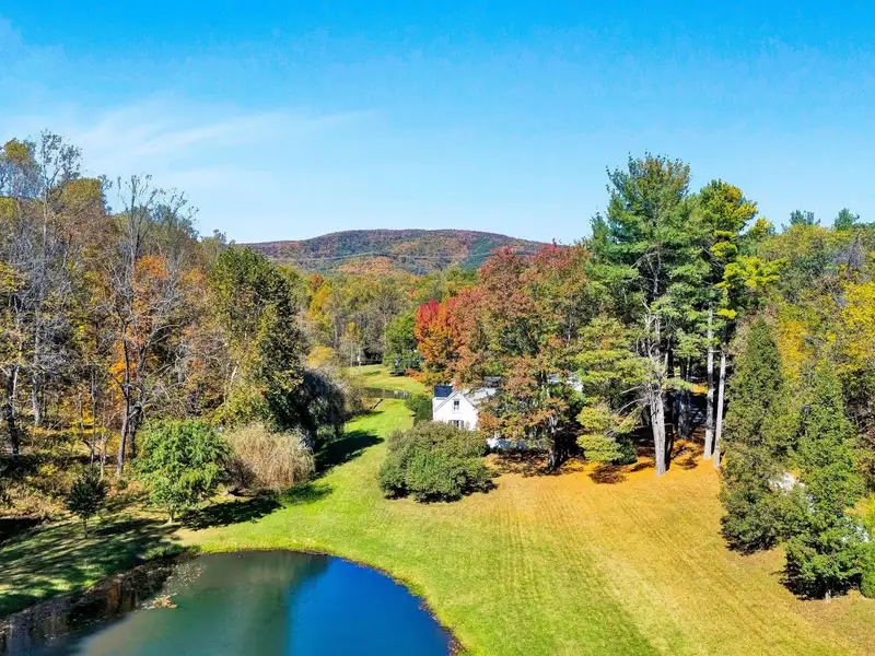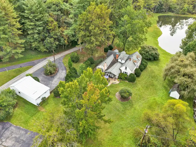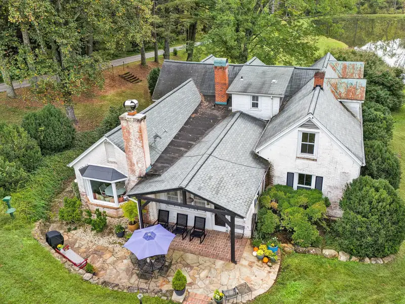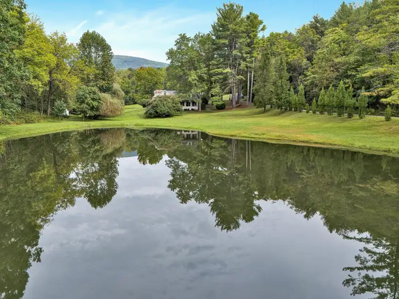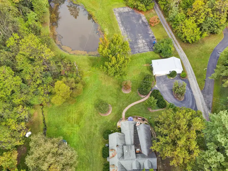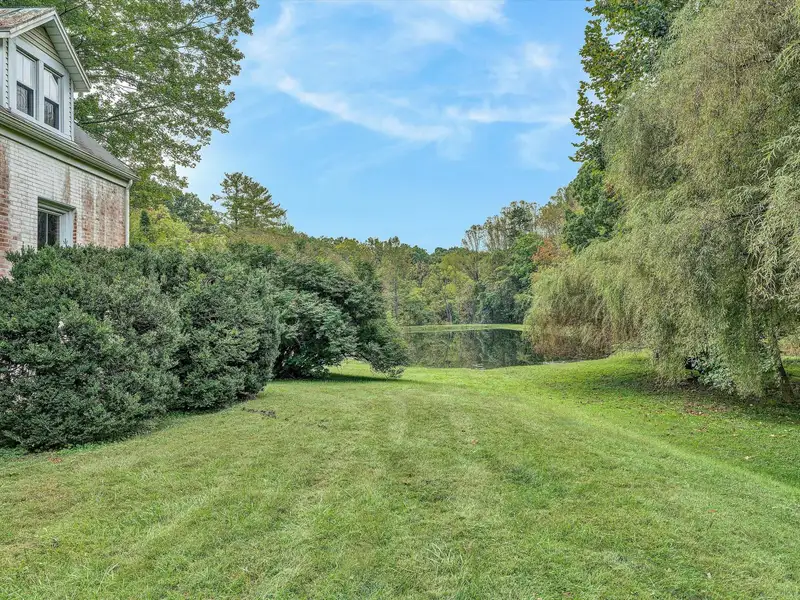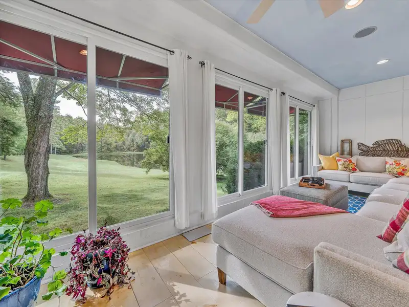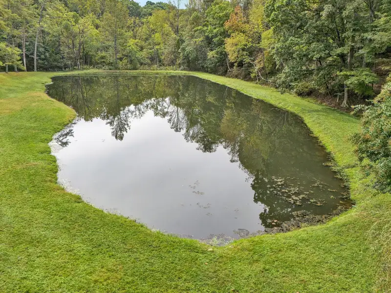 - Enclosed front porch overlooks stocked pond
