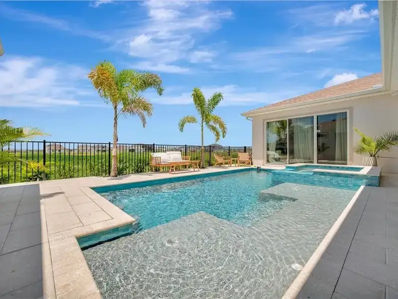 - Saltwater pool and spa with swim-up bar