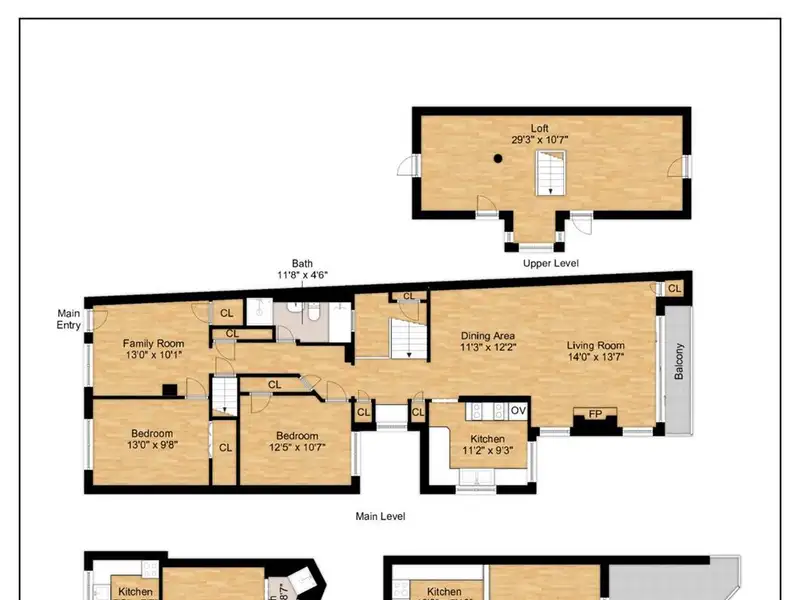 - Three separate living units