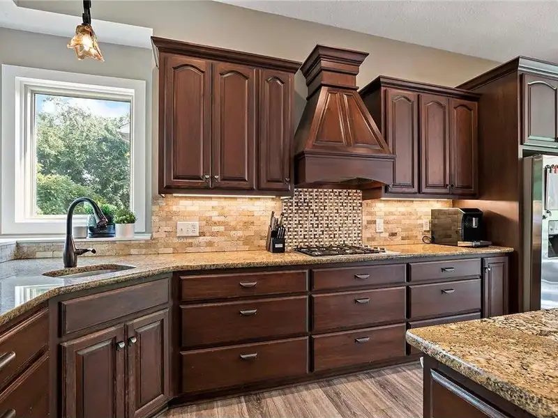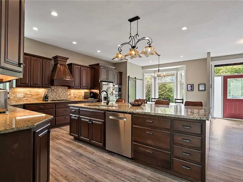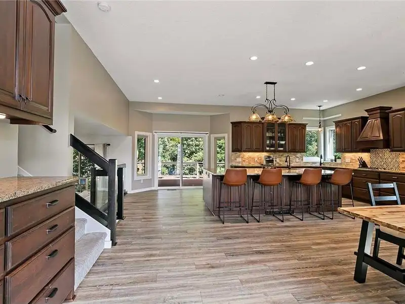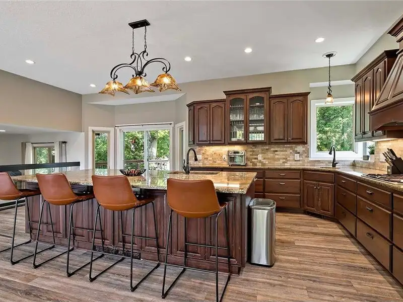 - Renovated open-concept kitchen with granite island