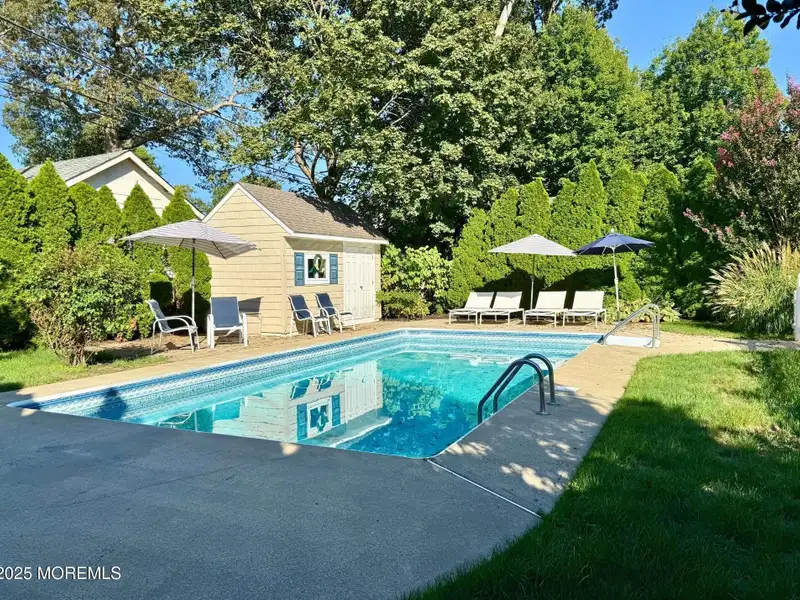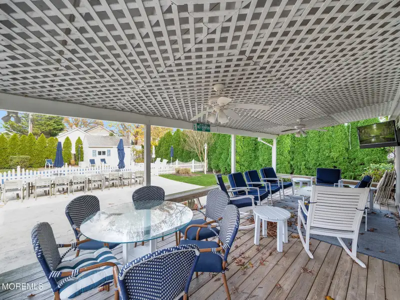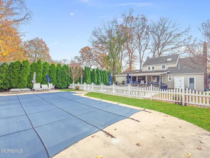 - Expansive covered deck with pool view