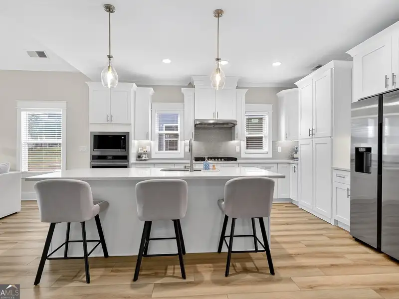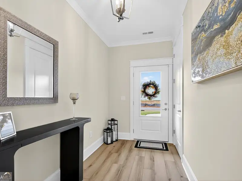 Welcome to this exceptional 3-bedroom, 2-bathroom home that redefines modern living in the charming community of Senoia. This better-than-new residence offers you the rare opportunity to enjoy a pristine property w/all the conveniences of contemporary design in a town that perfectly captures the essence of authentic Georgia small-town living. Step inside to discover a thoughtfully crafted interior featuring stunning quartz countertops that gleam throughout the kitchen, while beautiful luxury flooring offers a warm, contemporary feel that blends w/the home's elegant design features perfectly. The thoughtfully designed kitchen showcases a complete suite of stainless steel appliances, perfectly complementing the sleek aesthetic while providing the functionality today's homeowners demand. The real showstopper is the ingenious hidden walk-in pantry, a clever design element that maximizes storage while maintaining clean lines throughout the living space. Cozy evenings await by the ventless fireplace in your spacious great room, where you can unwind without the hassle of traditional chimney maintenance. The home's efficiency continues w/a tankless water heater, ensuring endless hot water while conserving energy and space.The home's gorgeous upgrades elevate every space, creating an environment that feels both luxurious and livable. Every detail has been carefully considered, from the premium finishes to the smart layout that maximizes both comfort & functionality. This is especially prominent in the primary suite where plush carpeting leads you to your own personal retreat of comfortable, quiet tranquility. In the en suite you will find sophisticated tile work & quartz counter tops that creates visual interest & timeless elegance. Strategic lighting design bathes the space in warm, flattering illumination. Thoughtfully designed storage solutions keep essentials organized while maintaining the serene, uncluttered aesthetic. Luxury finishes and premium hardware add refined touches that transform daily rituals into moments of indulgence. Every element works harmoniously to create an atmosphere reminiscent of a high-end spa, offering a private escape where you can truly unwind. Practical considerations haven't been overlooked either. The dedicated golf cart storage acknowledges the local lifestyle, while the HOA takes care of lawn maintenance, freeing up your time for more enjoyable pursuits. This attention to convenience extends throughout the property, making daily life effortlessly comfortable. Located in the delightful town of Senoia, this home puts you w/in easy reach of local attractions & amenities while immersing you in one of Georgia's most fascinating communities. Senoia has gained international recognition as a premier filming location, serving as the backdrop for the hit television series The Walking Dead and numerous major motion pictures. Despite its Hollywood connections, this authentic Georgia town has masterfully maintained its historic character & genuine small-town warmth. The community embraces its entertainment industry fame while preserving the welcoming, neighborly atmosphere that makes Senoia truly special. Visitors & residents alike appreciate how the town balances its celebrity status w/its commitment to authentic Southern hospitality & small-town values. Historic Main Street, less than a mile away, offers unique shopping & dining experiences that capture the area's genuine southern charm & rich heritage. Daily conveniences are equally accessible, w/Publix Super Market at Senoia Village nearby for all your grocery needs. This residence represents more than just a house; it's a gateway to a coveted lifestyle in one of the area's most charming towns! Don't miss this opportunity to own this exceptional home in one of Georgia's most sought-after communities, where quality construction, thoughtful design, authentic small-town charm, & prime location converge to create the perfect living environment.
