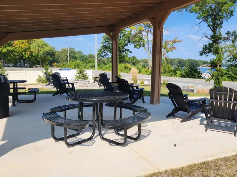 - Pavilion with firepit and lake views