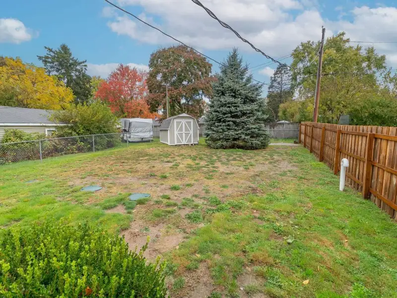 - Fenced backyard with deck