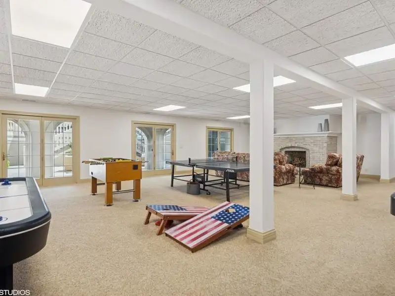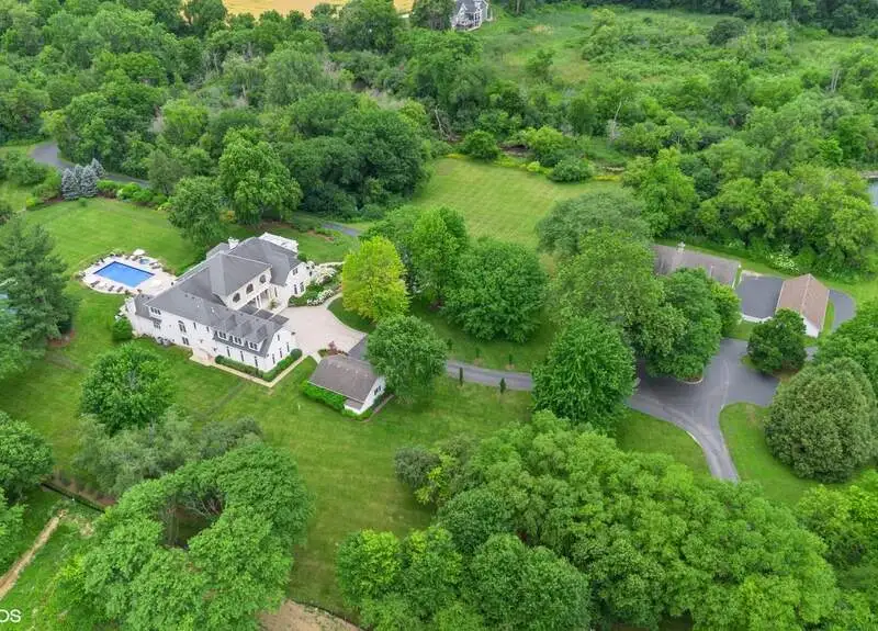 An Architectural Masterpiece in the heart of St. Charles - Step into glamour and sophistication at the illustrious Masco Estate-an exquisite residence envisioned by renowned architect, Scholz Design, and masterfully constructed in 2003, this estate is perfectly positioned just 35 miles west of Chicago, this stately sanctuary is nestled in the storybook landscape of St. Charles, Illinois. Approach via a secluded private lane, crossing a picturesque bridge over the tranquil Ferson Creek, and pass through elegant wrought iron gates into a world of splendor. Set on over 9 lush acres of manicured grounds and flourishing gardens, this distinguished Burr Road estate presents an unmatched lifestyle offering both grandeur and serenity. At the heart of the property lies the principal residence, encompassing over 12,000 square feet of refined living across three impeccably finished levels, including a full walkout lower level. This estate artfully blends old-world craftsmanship with modern luxury. Upon entry, be captivated by a 22-foot soaring great room, framed by Palladian windows, adorned with two sparkling crystal chandeliers, and anchored by a stately fireplace set in rich marble. Gorgeous travertine flooring and woods flows throughout, guiding you into the bespoke gourmet kitchen-a chef's haven boasting extensive maple cabinetry, high-end appliances, gleaming granite countertops, and a sunlit breakfast nook with panoramic views. Architectural brilliance continues in the rotunda-style turret, showcasing a cozy fireplace and terrace access-perfect for intimate gatherings or quiet reflection. The lavish first-floor primary suite is a private retreat, complete with an opulent ensuite, sitting rooms, a wet bar, private patio, and a dedicated staircase descending to a private gym. The adjacent executive office/library is a study in refinement, featuring custom millwork, fireplace, and it's own tranquil and private patio overlooking the expansive side lawn-an ideal blend of form and function. Additional amenities include dual laundry rooms on the main and lower levels for effortless convenience. Upstairs, new wool carpeting leads to four generously proportioned ensuite bedrooms, each offering privacy and elegant finishes. An expansive covered veranda on this level provides sweeping views and a perfect setting for entertaining. The walkout lower level is a destination in itself-designed for hosting and relaxation with a handcrafted Irish-imported oak bar, climate-controlled wine cellar, recreation spaces, gym, vault room, two fireplaces, and a full bath. Outdoors, this estate is equally impressive. Lounge by the resort-style pool and hot tub (with new liner and cover in 2023), entertain on the two-tiered stone terrace and loggia, or gather around the cozy fire pit. For the sports enthusiast, enjoy tennis, basketball, and pickleball courts-resurfaced in 2025 for basketball, pickleball and tennis -- all within your own private grounds. A highlight of the estate is the remarkable 2,450-square-foot Bank Barn, ideal for a home business, studio, or future guesthouse. Once a single family home & office (has it's own address), this barn has five bedrooms, three bathrooms and two kitchens. Featuring 24-foot vaulted ceilings, a dramatic balcony with sunset views, walkout lower level, and an attached garage, the barn is a separate three-car garage with epoxy flooring, AC, and a finished loft. Perfectly positioned with two private entrances, this one-of-a-kind estate offers close proximity to PGA event courses such as Medinah Country Club, St. Charles Country Club, The Hawk Country Club, Dunham Woods Riding Club, Leroy Oaks Forest Preserve, the Randall Road corridor, and the private DuPage Airport-all within the acclaimed St. Charles School District 303. This is more than a home-it's a legacy property and a rare opportunity to own one of St. Charles' most iconic estates. Call to schedule your private showing today.