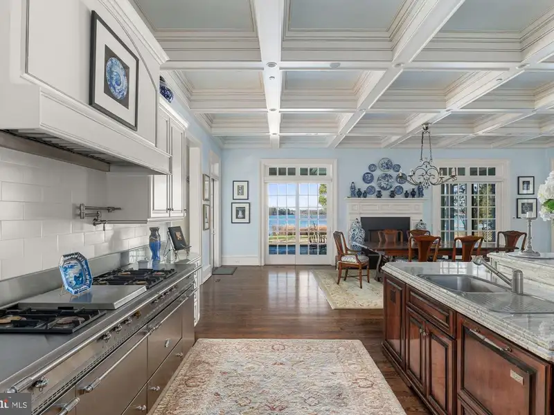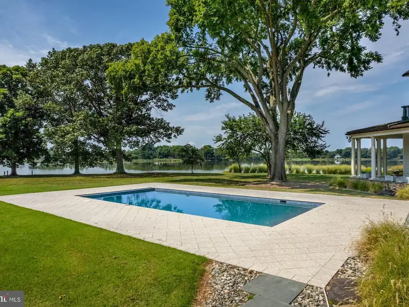 NEW PRICE! Located minutes from downtown St. Michaels, Aqua Vitae the waters of life, sits on 8.6 private acres on Harris Creek, a Chesapeake Bay tributary. This custom-built offering w/ over 400 of direct water frontage is comprised of 3 magnificent structures: a grand main residence, guest cottage, & party barn all highlighted by a waterside pool, pier w/ 4 MLW, pine grove, putting green, extensive landscaping & incomparable craftmanship. The 12,000 SF main residence, positioned to prioritize water views, welcomes you via prominent double lead-glass doors & a grand 3-story foyer w/ dual-staircase. The river room w/ 2-story octagon copula offers 270 views of the property & creek. The TV room w/ 3 exposures & gas-burning fireplace offers double French doors on two sides leading to the wrap-around flagstone patio. The stunning gourmet kitchen is a true chefs dream. Offering oversized island, built-in media/storage cabinet, coffered ceiling, fireplace, 3 sinks, double Subzero fridges w/ freezer drawers, 2 beverage drawers, 3 dishwashers, Wolf microwave & a stainless-steel Lacanche range with 6-burners, pot warmer, warming oven, & 2 ovens. Complimenting the kitchen is a large walk-in pantry w/ dishwasher, sink & extra freezer in hall. Off the kitchen is a covered porch w/ gas fireplace & ghost screens, a perfect spot to enjoy evenings. A large open dining room has 2 custom built-in display cases. The grand salon w/ bay window, gas-fireplace & intricate mantel is reminiscent of Paris. Adjoining the salon is the handsome 2-story curly cherrywood library w/ custom display cases & leaded-glass pocket doors. The adjoining climate-controlled wine room has a wet bar & storage for 750+ bottles. Wood floors flow throughout the entire main level. The main level is completed by an office, powder room & laundry to service the pool, 2 additional powder rooms, elevator to all 4 levels, mud/dog room, rear spiral staircase, guest suite w/ ensuite bathroom, & 2-car attached garage. The 2nd level offers a generous primary suite w/ fireplace & full length terrace overlooking the water. Her wing features dressing room w/ custom built-ins, separate sitting room, & a luxurious bathroom w/ marble tile, separate shower, jetted tub, & vanity. His wing offers an office w/ fireplace, paneled closet leading to separate bathroom w/ shower, travertine stone, & vanity. From his office access the 2nd level of library, open to below. Just off of the primary suite is a bar area/kitchen. 3 additional bedrooms, each w/ ensuite bathroom, and a laundry room complete the 2nd level. The 3rd level offers theater/rec room, play area, bedroom w/ ensuite bathroom, powder room, & ample storage. The lower-level houses utilities, storage, & enough room for an exercise area. The charming guest cottage sits amongst extensive landscaping. The main level offers a full kitchen, dining area, living room, sunroom, large family room, 2 bedrooms w/ shared bathroom, additional guest bathroom, & large entertaining room. Upstairs is a full bedroom w/ ensuite bathroom. The unfinished lower level offers storage. The party barn originally built for boat storage was designed to look like an old Pennsylvania barn w/ 4 of stone around the base. Flanked by 2 garage wings allowing for 4+ cars & capped w/ a cupola, the shingled-style barn has two large doors on either side of the building that allow for a trailered boat or 4+ more cars. The 2nd level is a loft w/ sleeping/living area w/ full bathroom, plumbed for potential kitchenette, front & rear terraces, & a spiral staircase to a crows nest w/ amazing views. There is a full property generator & a dog run w/ kennel just off the rear. Outside enjoy the benefits of beautiful shore living amongst the verdant grounds, mature landscaping & exceptional views. The pier offers 4 MLW & the shoreline is fully rip-rapped w/ natural plantings.