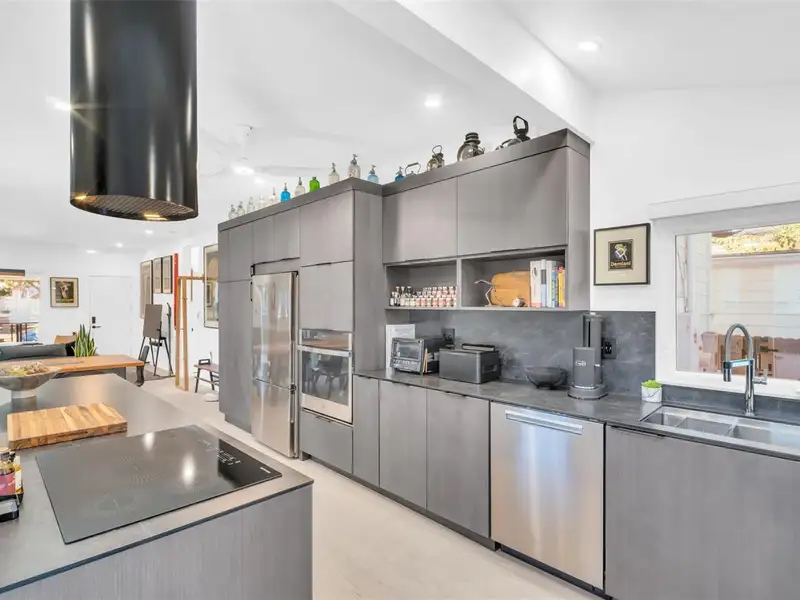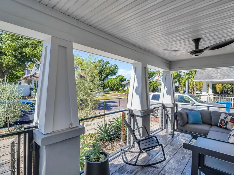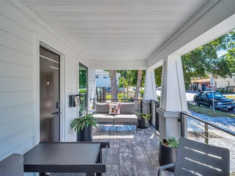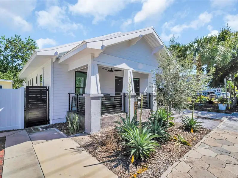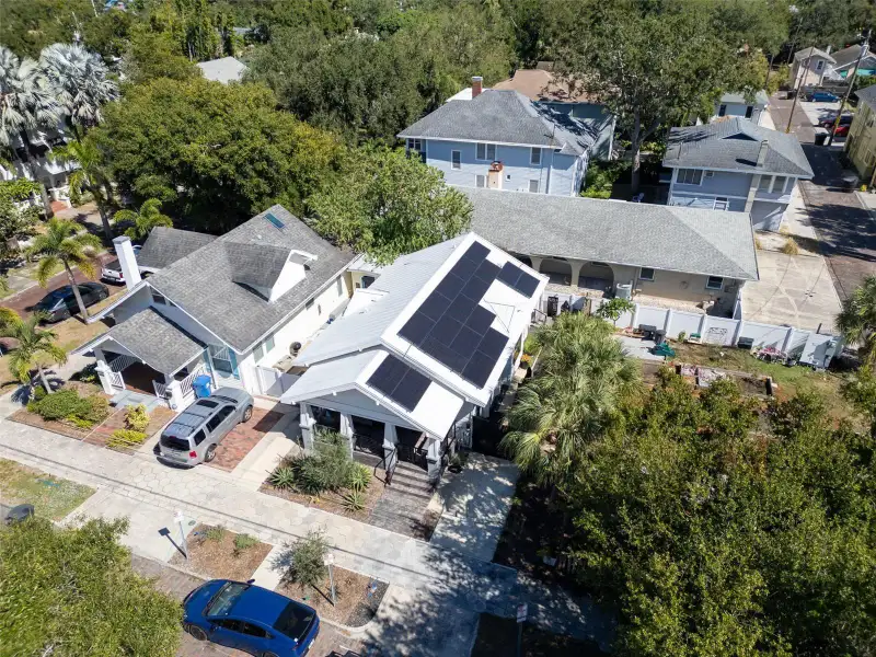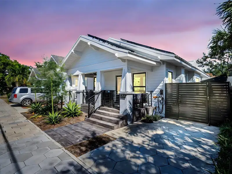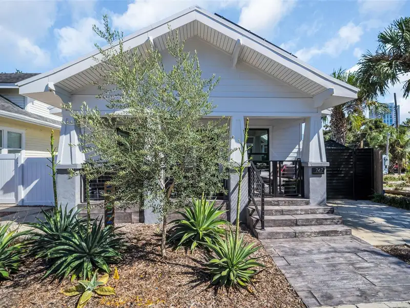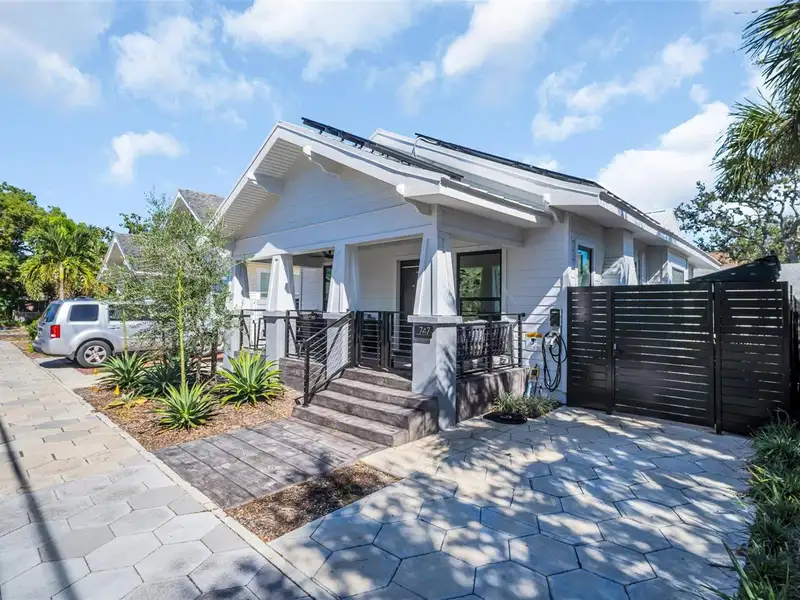 WELCOME TO 747 2ND STREET NORTH, where historical charm meets the innovation of today. This TOTALLY RENOVATED AND MODERNIZED residence blends timeless architecture with forward-thinking premium upgrades, delivering both curb appeal and peace of mind. From the moment you arrive, the homes welcoming front patio with custom railings and with stamped concrete sets the stage for perfection. Durable Hardie board siding, crisp paint, and durable metal roof showcase its renewed presence while preserving historic character. Step inside to find interiors wrapped in cork wood flooring, offering the elegance of hardwood with the added benefits of comfort, sound absorption, and sustainability. Designed for efficiency, the home features fully paid-for 7KW solar panels paired with a whole-house battery backup, keeping your power bill at zero while ensuring uninterrupted comfort. Two high-performance mini-split units and newly installed windows further enhance energy savings and year-round climate control. The kitchen is a modern showpiece with Fisher & Paykel and Miele appliances, new cabinetry, sleek finishes, and abundant storage, ideal for both everyday living and entertaining. Thoughtful upgrades like a UV water purification system + carbon & salt filter softener and tankless water heater elevate the experience even more. The primary bathroom has been redesigned as a calming retreat, offering spa-like finishes and a serene atmosphere for unwinding at the end of the day. Beyond the visible updates, the home also boasts all new electric/fitted with surge protection and replumbed with new sewer line along with important structural improvements including new foundation support footers, insulation upgrade: R-38 (attic) & R-15(walls) ensuring long-term stability. Outdoors, a freshly fenced yard with custom designed metal fencing creates a private haven for pets, gatherings, or simply soaking in the Florida sunshine. Electric vehicle owners will appreciate the dedicated EV charging setup right on the driveway. Situated just blocks from downtown St. Petersburg, this home places you within walking distance of coffee shops, boutiques, parks, and the City's vibrant waterfront. It's a rare opportunity to enjoy historic character, cutting-edge efficiency, and an unbeatable location all in one.