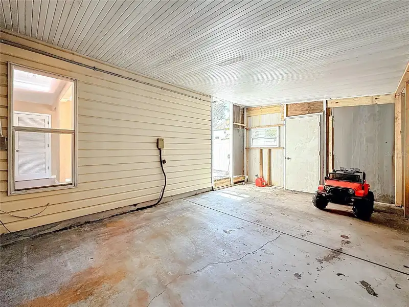 - Enclosed storage shed with washer/dryer hookups