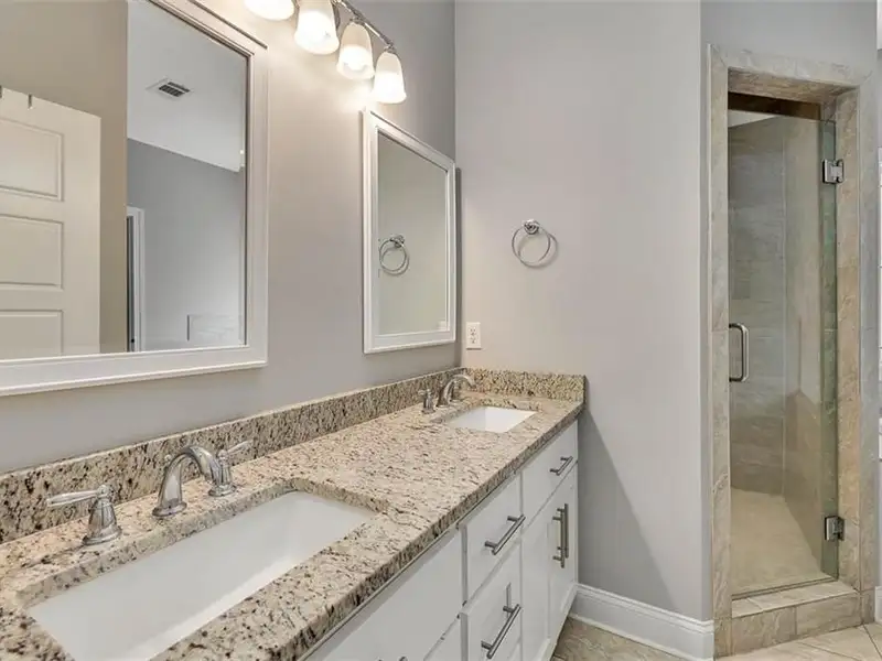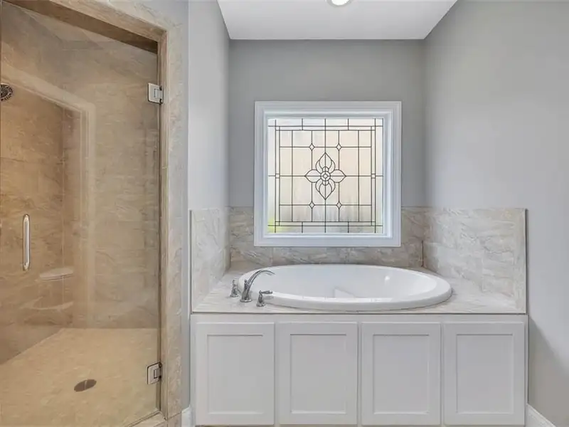 - Primary suite with dual vanities and soaking tub