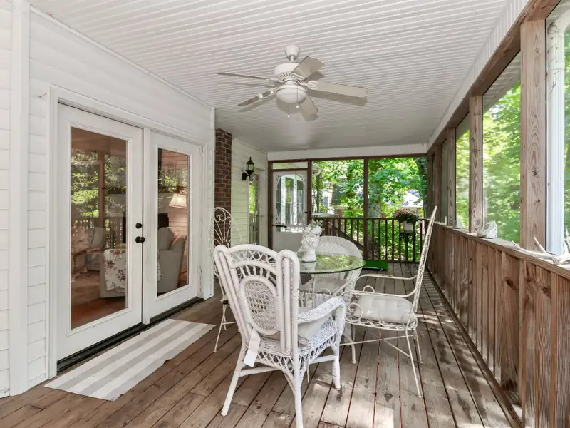 - Screened-in porch spanning back of home