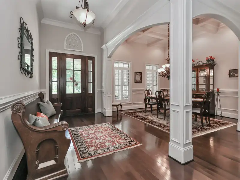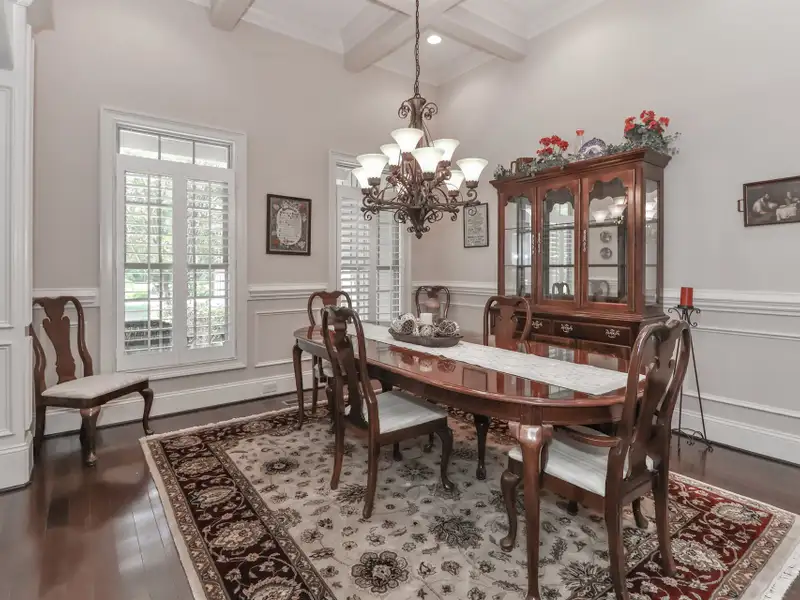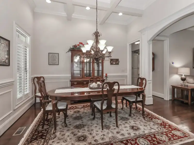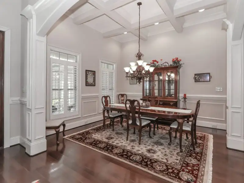 - Crown molding and coffered ceilings