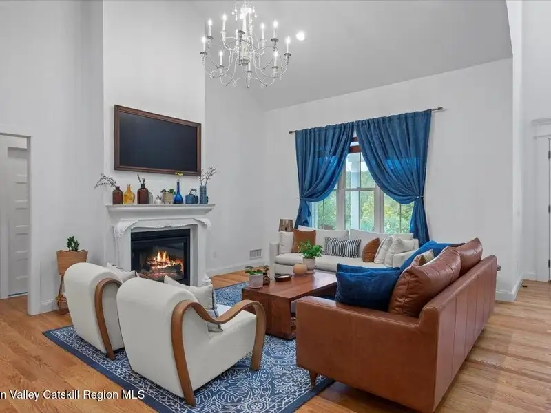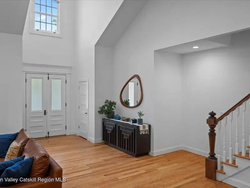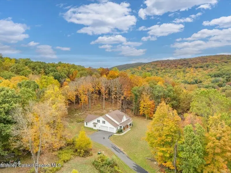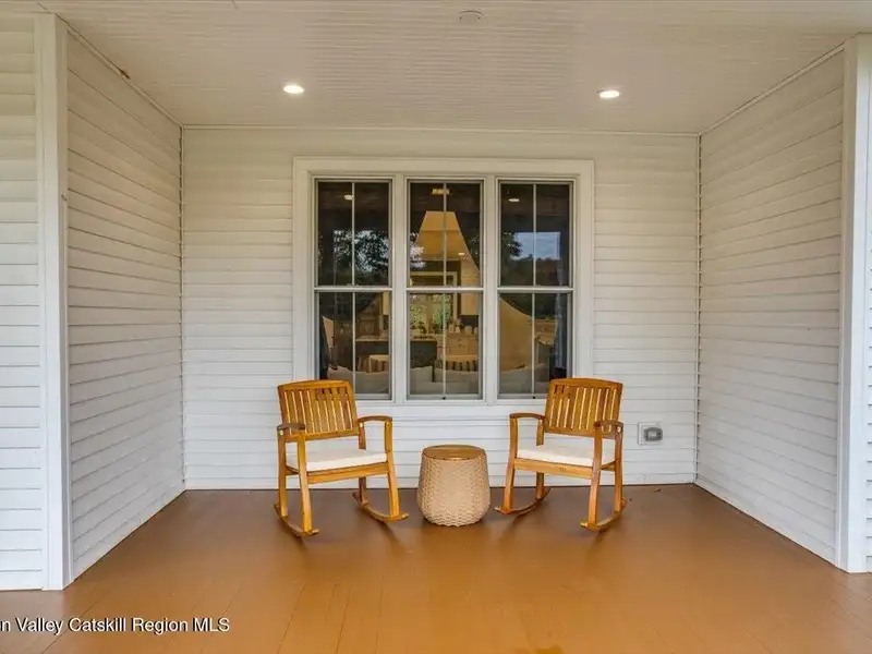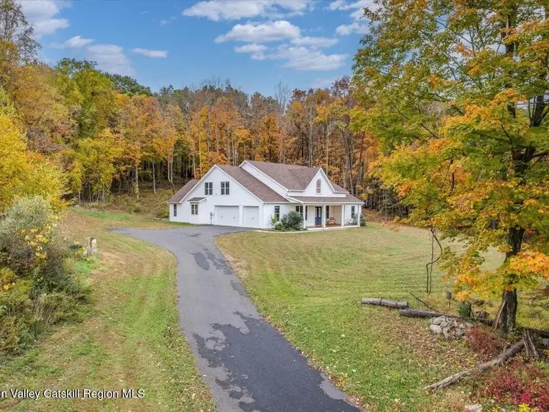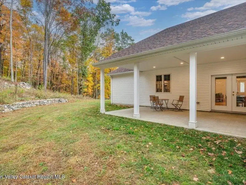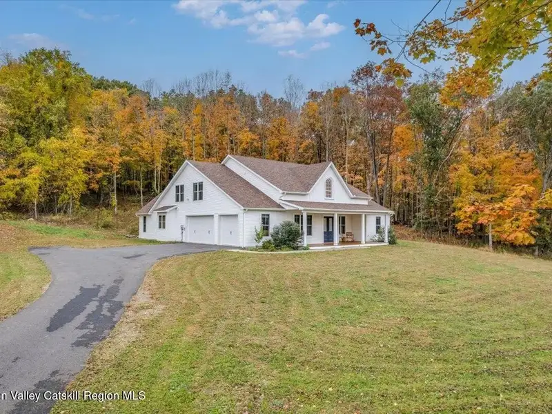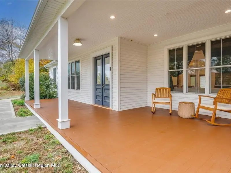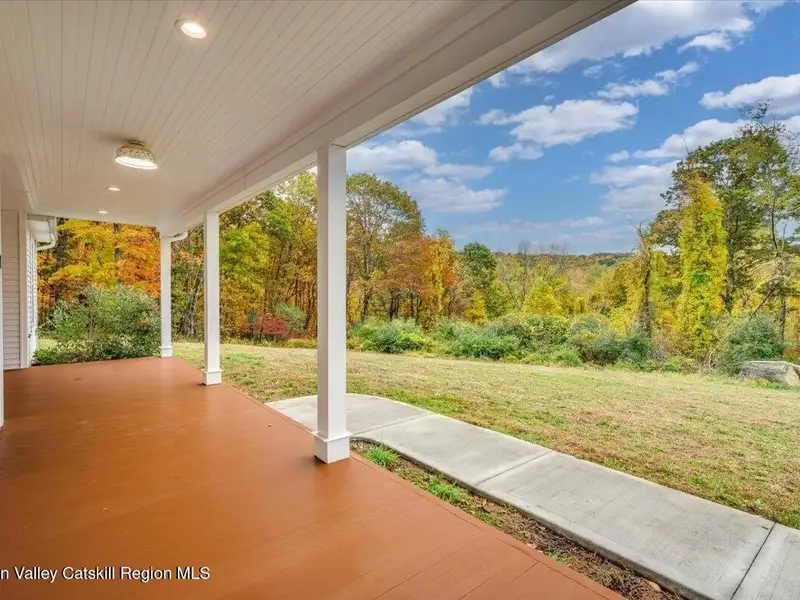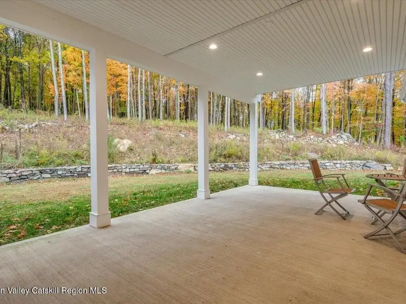 A Timeless Farmhouse Retreat with Modern Elegance. Step into refined country living with this brand-new, bespoke farmhouse ranch, where Old World charm meets contemporary craftsmanship. Gracefully set on over five private, serene acres, this four-bedroom, three-and-a-half-bath home invites you to savor a lifestyle of quiet sophistication and natural beauty. A dramatic 20-foot entryway ceiling welcomes you with an antique stained-glass window, setting the tone for a home where curated history and modern comfort intertwine. Wide-plank hardwood floors, soaring 9-foot ceilings, and sun-drenched Anderson windows carry you through a light-filled open floor plan, designed for effortless entertaining and everyday elegance. The heart of the home is a chef's kitchen, beautifully appointed with quartz countertops, Cafe series appliances, a farmhouse sink, and a custom range hood. An antique hutch and a walk-in pantry with custom cabinetry offer both charm and function, while French doors in the dining area lead to a covered patio-ideal for al fresco gatherings. The living room is anchored by a gas fireplace with a hand-hewn antique wood mantel and exposed beam, creating a warm, inviting ambiance. A refined powder room, mudroom with garage access, and an oversized laundry suite with built-in storage elevate everyday living. The primary suite is a true sanctuary, featuring a vaulted ceiling, private access to the patio, a custom walk-in closet, and a luxurious spa bath with a freestanding soaking tub, walk-in shower, water closet, and heated floors. Two additional bedrooms and a full bath complete the main level. Upstairs, a spacious media room leads to a fourth bedroom with a walk-in closet and a private en-suite bath-ideal for guests or an au pair suite. Thoughtful details abound: Therma-Tru doors, foam insulation, on-demand hot water, and antique accents throughout. The home also features a three-car attached garage and a wide front porch with Douglas Fir decking, perfect for morning coffee or evening sunsets. Ideally located with convenient access to I-84, Taconic State Parkway, and the Metro-North train, this exceptional residence offers country living with seamless connectivity. Brand new Tesla electric car charger installed. Many home essentials are still covered under the new-build warranty.