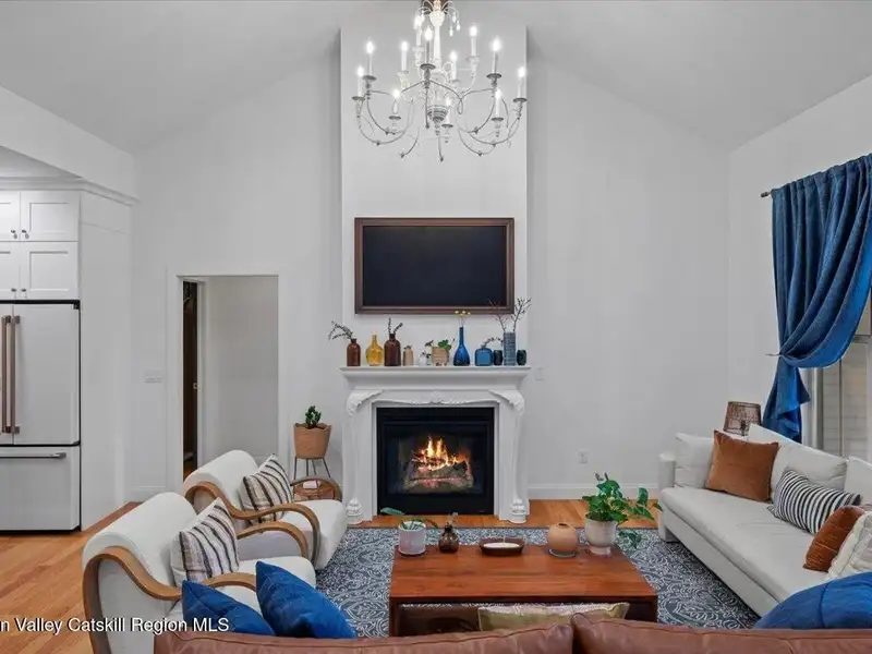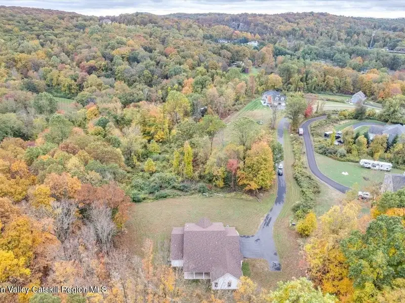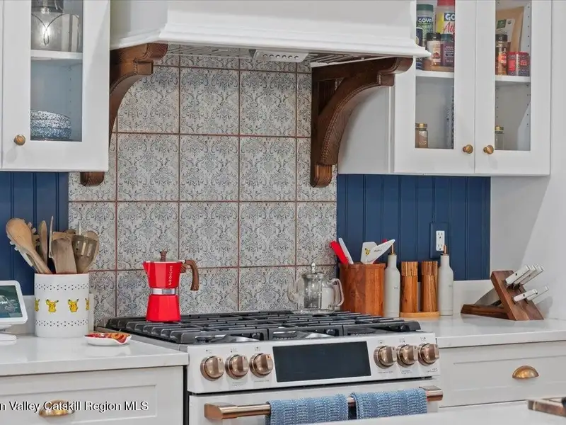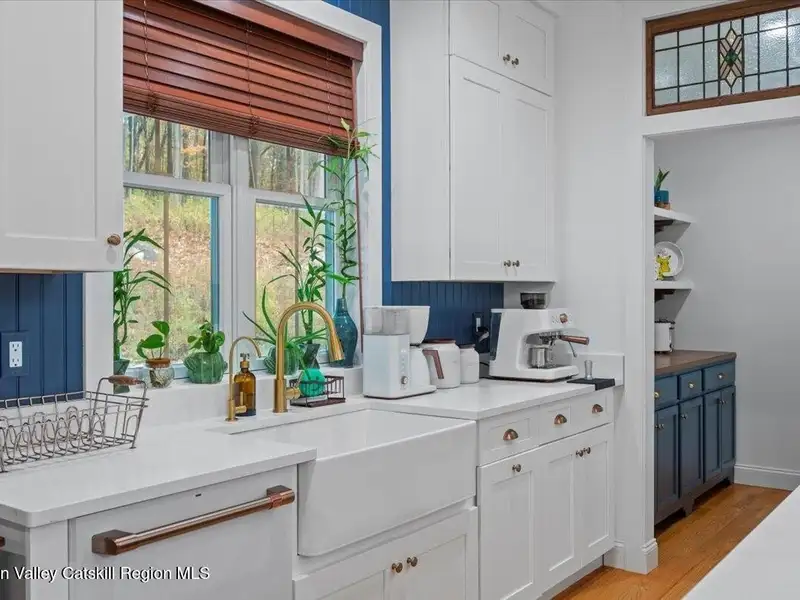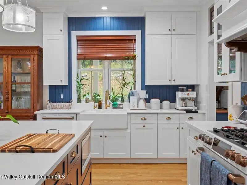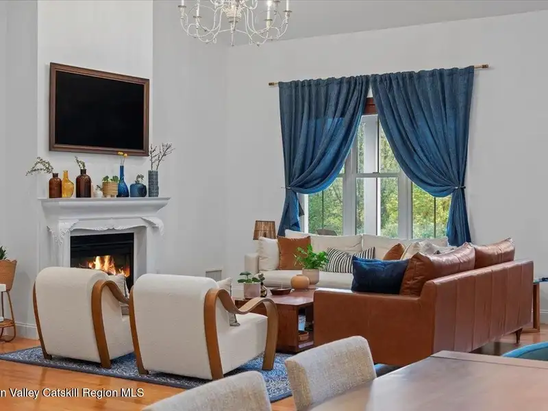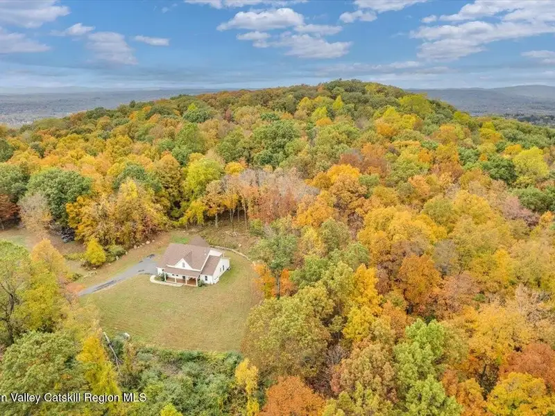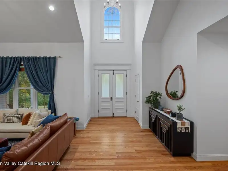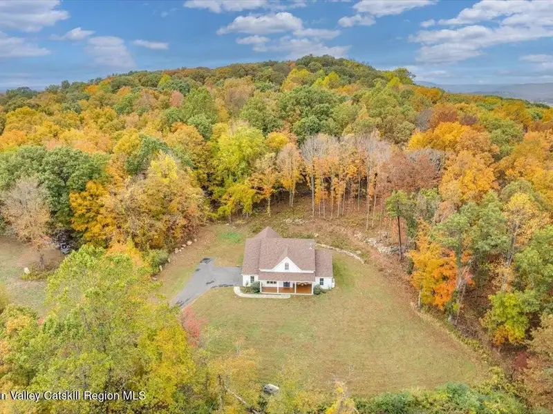 A Timeless Farmhouse Retreat with Modern Elegance. Step into refined country living with this brand-new, bespoke farmhouse ranch, where Old World charm meets contemporary craftsmanship. Gracefully set on over five private, serene acres, this four-bedroom, three-and-a-half-bath home invites you to savor a lifestyle of quiet sophistication and natural beauty. A dramatic 20-foot entryway ceiling welcomes you with an antique stained-glass window, setting the tone for a home where curated history and modern comfort intertwine. Wide-plank hardwood floors, soaring 9-foot ceilings, and sun-drenched Anderson windows carry you through a light-filled open floor plan, designed for effortless entertaining and everyday elegance. The heart of the home is a chef's kitchen, beautifully appointed with quartz countertops, Cafe series appliances, a farmhouse sink, and a custom range hood. An antique hutch and a walk-in pantry with custom cabinetry offer both charm and function, while French doors in the dining area lead to a covered patio-ideal for al fresco gatherings. The living room is anchored by a gas fireplace with a hand-hewn antique wood mantel and exposed beam, creating a warm, inviting ambiance. A refined powder room, mudroom with garage access, and an oversized laundry suite with built-in storage elevate everyday living. The primary suite is a true sanctuary, featuring a vaulted ceiling, private access to the patio, a custom walk-in closet, and a luxurious spa bath with a freestanding soaking tub, walk-in shower, water closet, and heated floors. Two additional bedrooms and a full bath complete the main level. Upstairs, a spacious media room leads to a fourth bedroom with a walk-in closet and a private en-suite bath-ideal for guests or an au pair suite. Thoughtful details abound: Therma-Tru doors, foam insulation, on-demand hot water, and antique accents throughout. The home also features a three-car attached garage and a wide front porch with Douglas Fir decking, perfect for morning coffee or evening sunsets. Ideally located with convenient access to I-84, Taconic State Parkway, and the Metro-North train, this exceptional residence offers country living with seamless connectivity. Brand new Tesla electric car charger installed. Many home essentials are still covered under the new-build warranty.