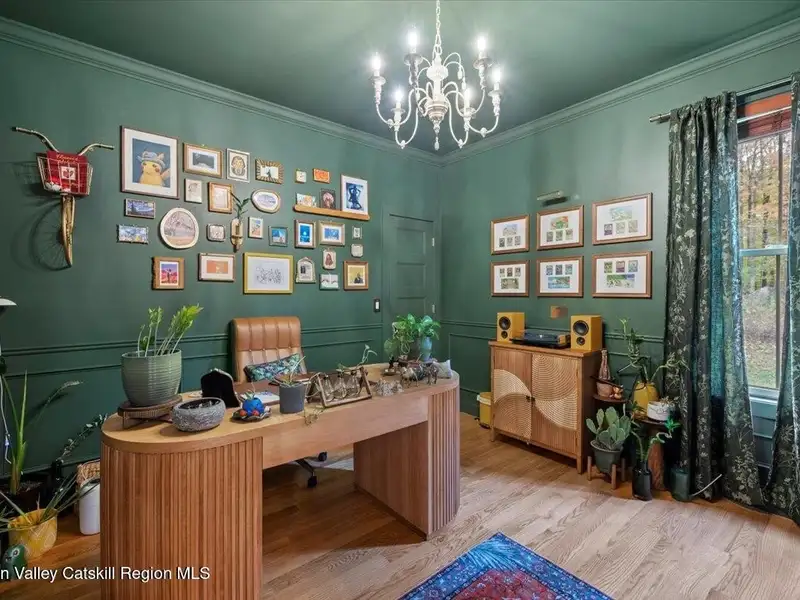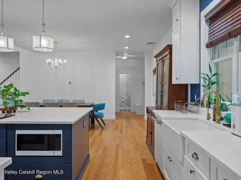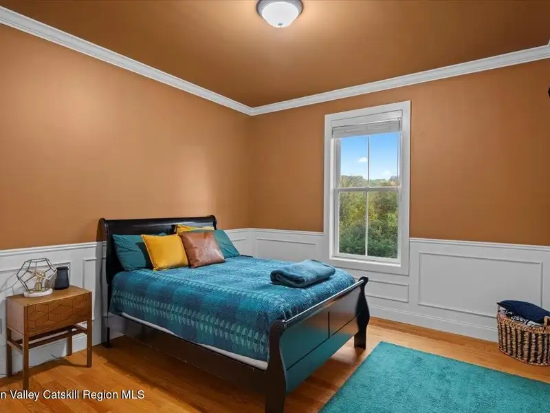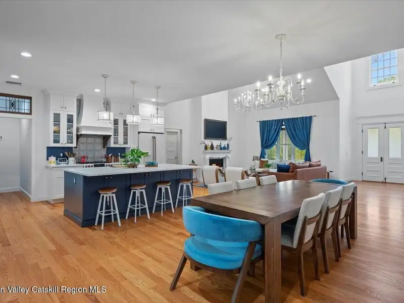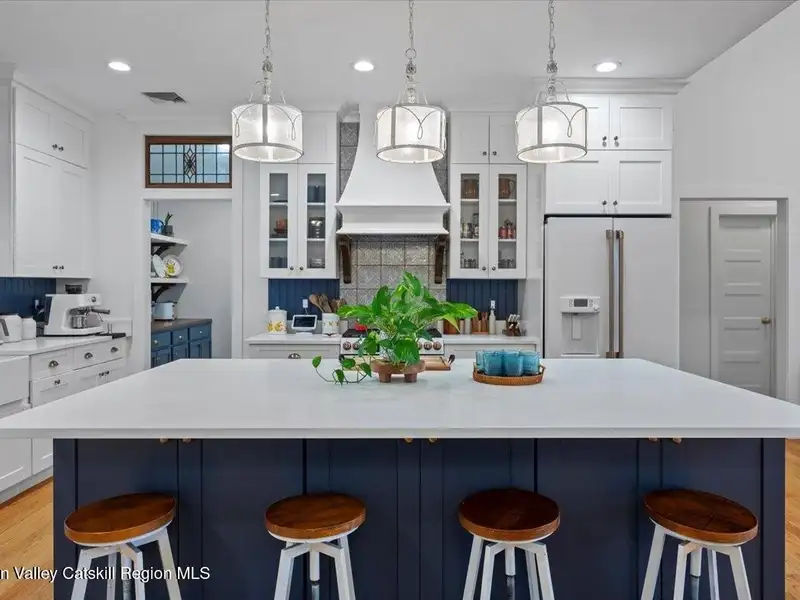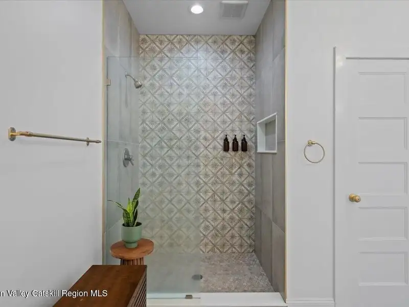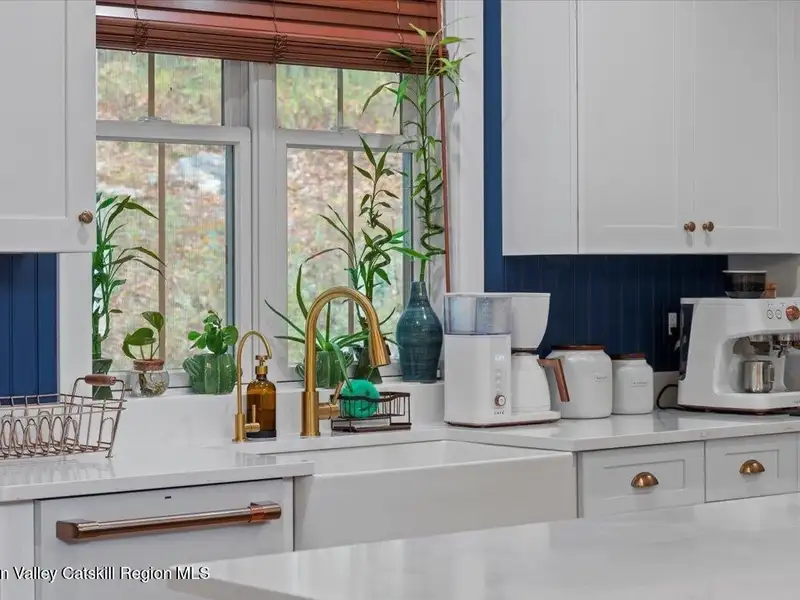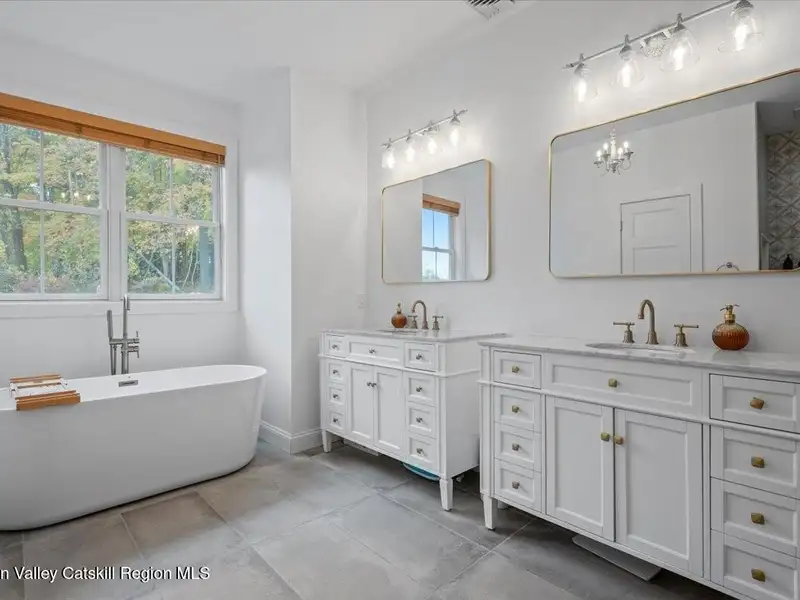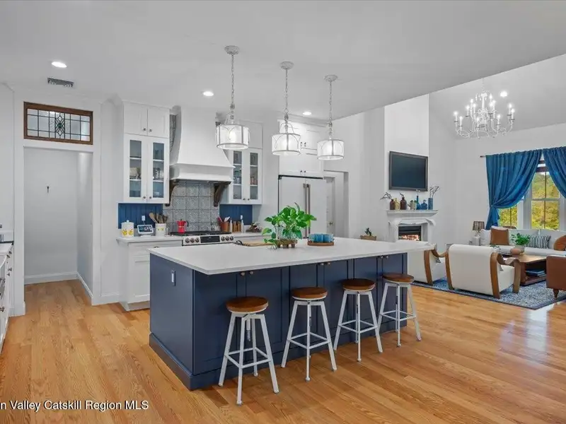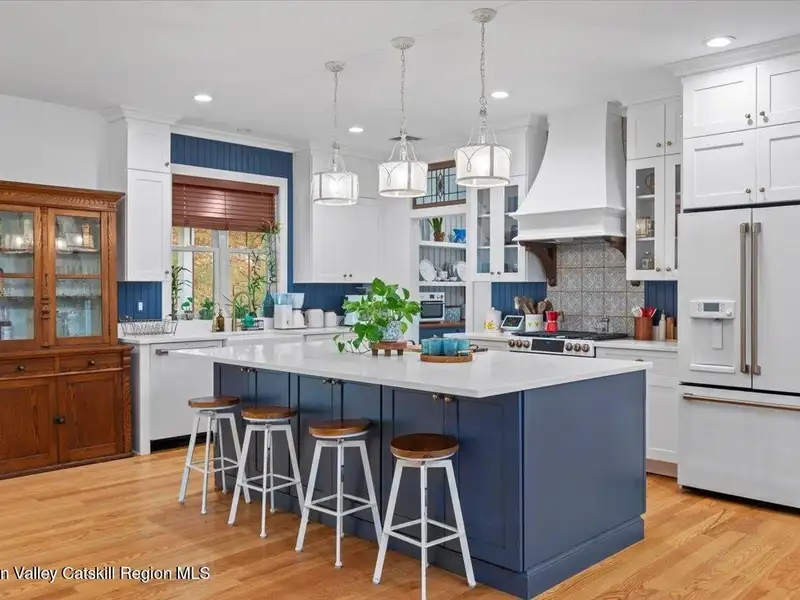 A Timeless Farmhouse Retreat with Modern Elegance. Step into refined country living with this brand-new, bespoke farmhouse ranch, where Old World charm meets contemporary craftsmanship. Gracefully set on over five private, serene acres, this four-bedroom, three-and-a-half-bath home invites you to savor a lifestyle of quiet sophistication and natural beauty. A dramatic 20-foot entryway ceiling welcomes you with an antique stained-glass window, setting the tone for a home where curated history and modern comfort intertwine. Wide-plank hardwood floors, soaring 9-foot ceilings, and sun-drenched Anderson windows carry you through a light-filled open floor plan, designed for effortless entertaining and everyday elegance. The heart of the home is a chef's kitchen, beautifully appointed with quartz countertops, Cafe series appliances, a farmhouse sink, and a custom range hood. An antique hutch and a walk-in pantry with custom cabinetry offer both charm and function, while French doors in the dining area lead to a covered patio-ideal for al fresco gatherings. The living room is anchored by a gas fireplace with a hand-hewn antique wood mantel and exposed beam, creating a warm, inviting ambiance. A refined powder room, mudroom with garage access, and an oversized laundry suite with built-in storage elevate everyday living. The primary suite is a true sanctuary, featuring a vaulted ceiling, private access to the patio, a custom walk-in closet, and a luxurious spa bath with a freestanding soaking tub, walk-in shower, water closet, and heated floors. Two additional bedrooms and a full bath complete the main level. Upstairs, a spacious media room leads to a fourth bedroom with a walk-in closet and a private en-suite bath-ideal for guests or an au pair suite. Thoughtful details abound: Therma-Tru doors, foam insulation, on-demand hot water, and antique accents throughout. The home also features a three-car attached garage and a wide front porch with Douglas Fir decking, perfect for morning coffee or evening sunsets. Ideally located with convenient access to I-84, Taconic State Parkway, and the Metro-North train, this exceptional residence offers country living with seamless connectivity. Brand new Tesla electric car charger installed. Many home essentials are still covered under the new-build warranty.