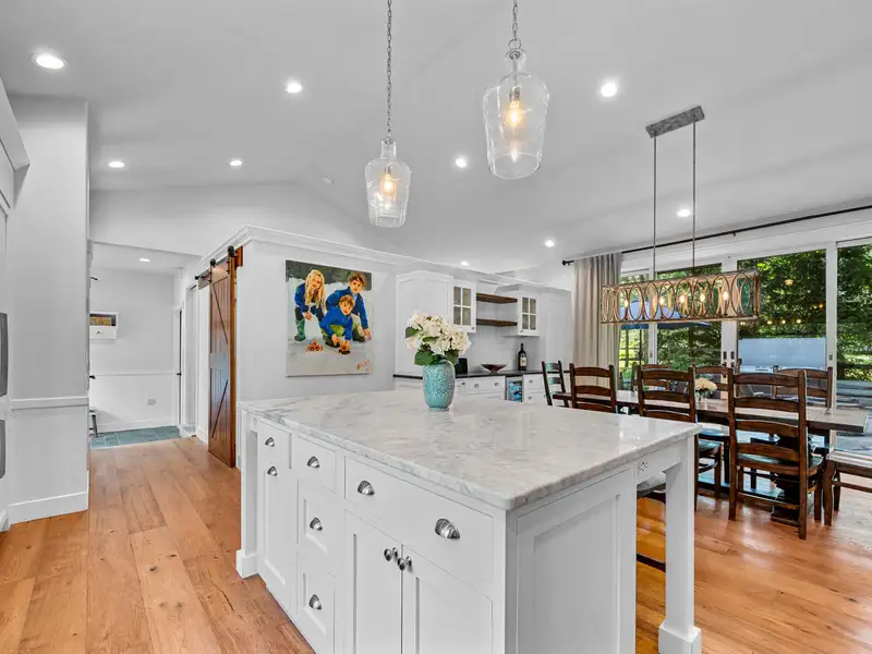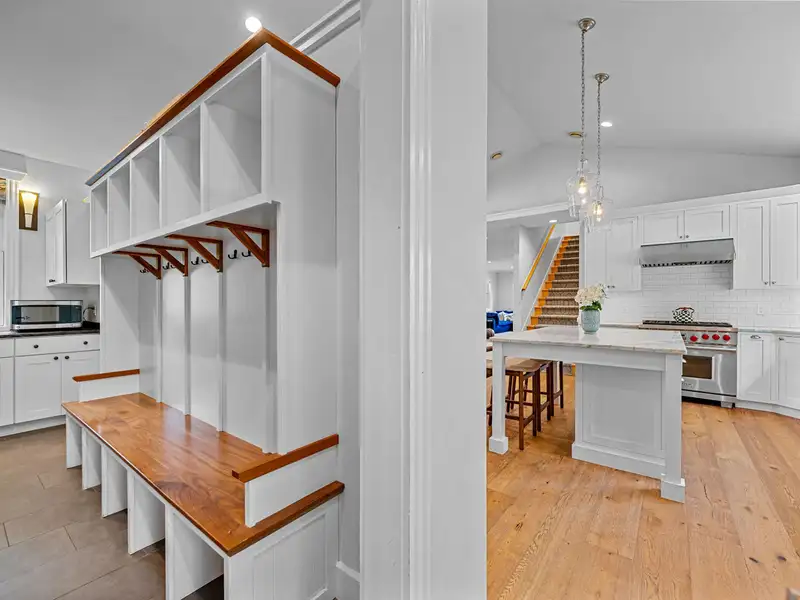 - Custom cabinetry and wine fridge