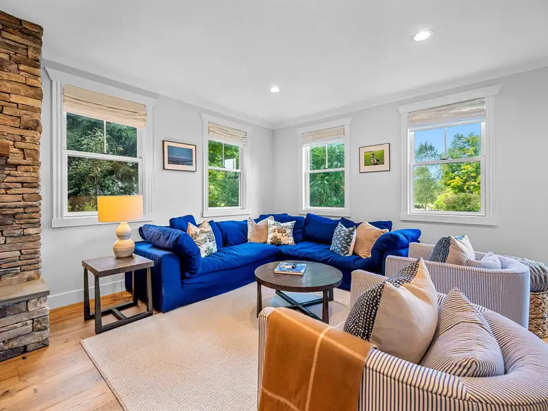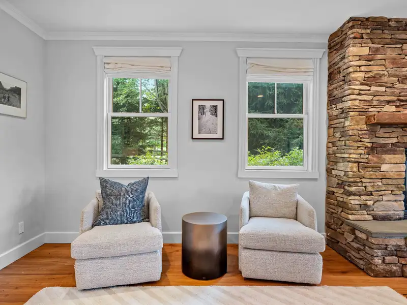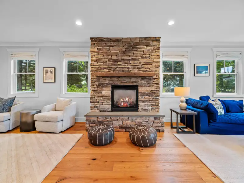 - Cozy living room with gas fireplace