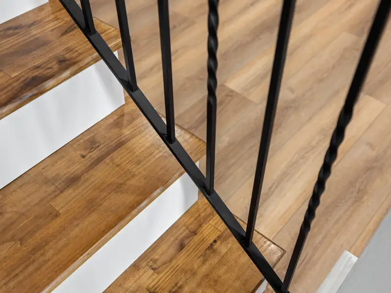 - Custom tiled showers and iron railings