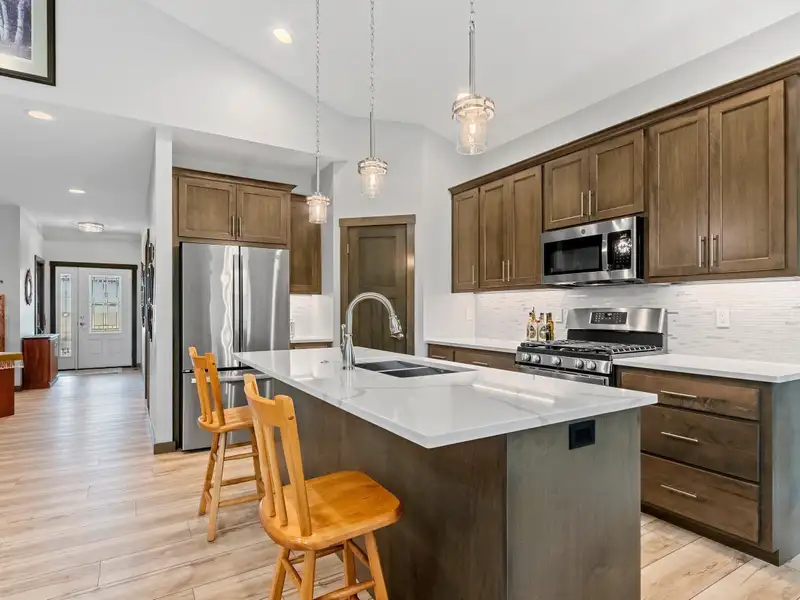 - Kitchen features center island