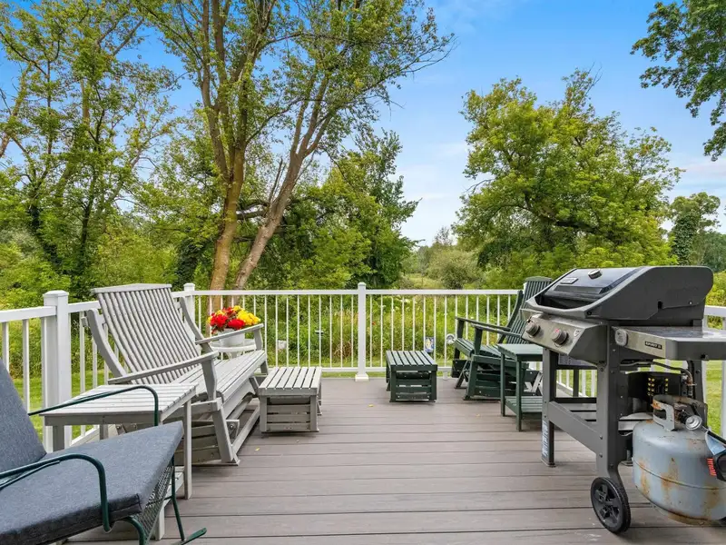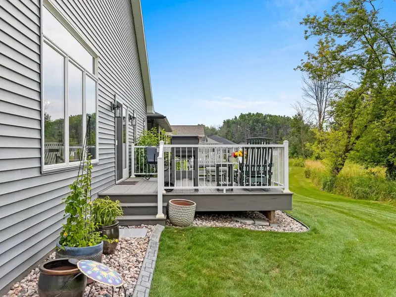 - Composite deck overlooks wooded backdrop