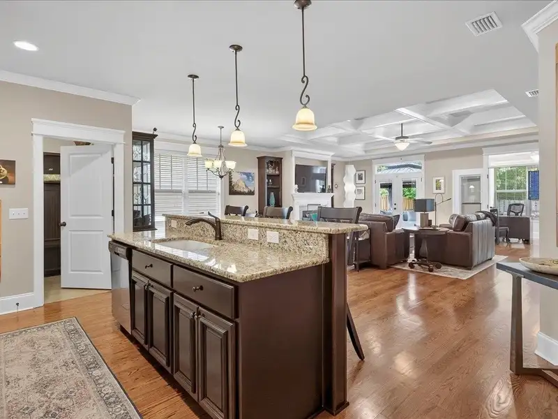 - Custom cabinetry with granite countertops