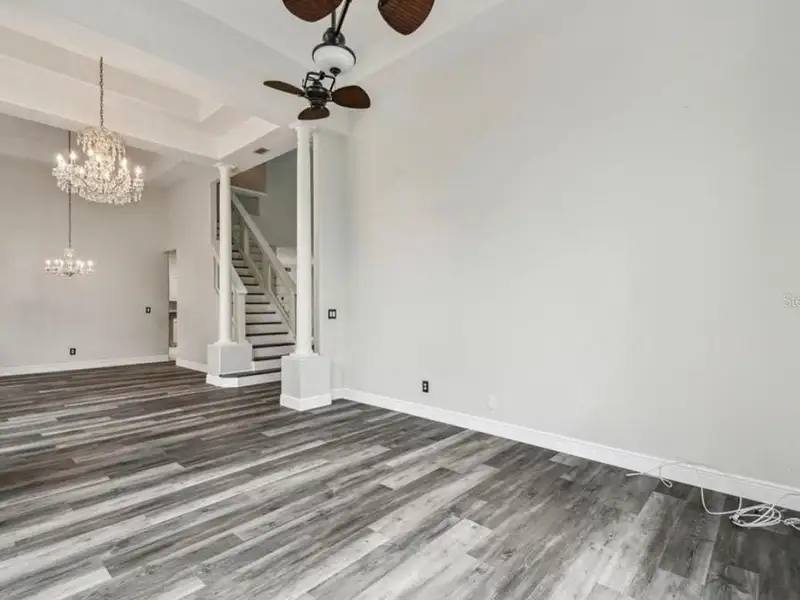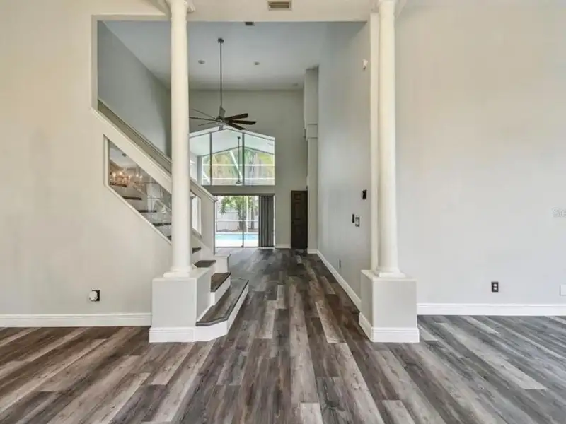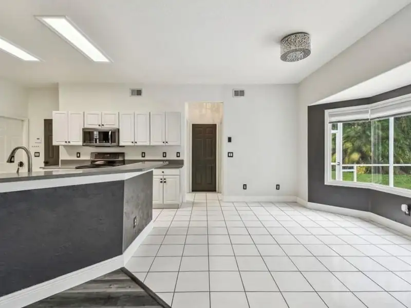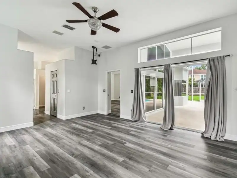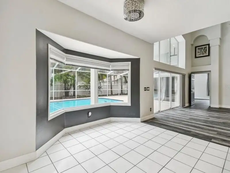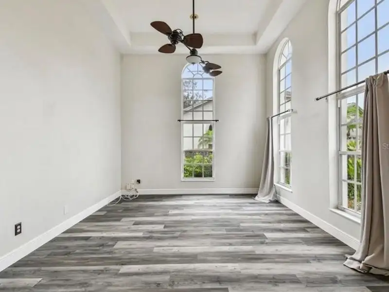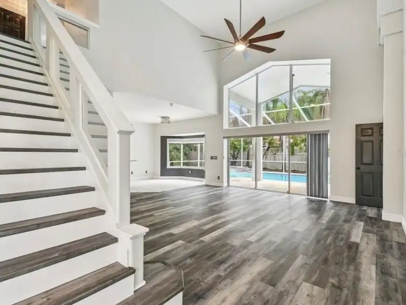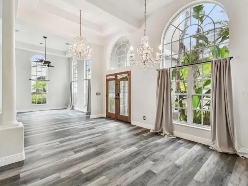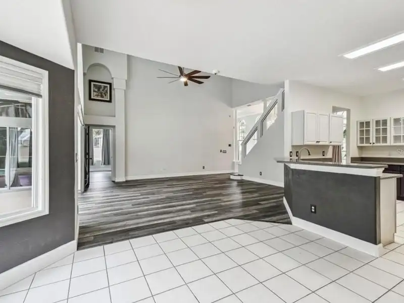 - Spacious open floor plan with high ceilings