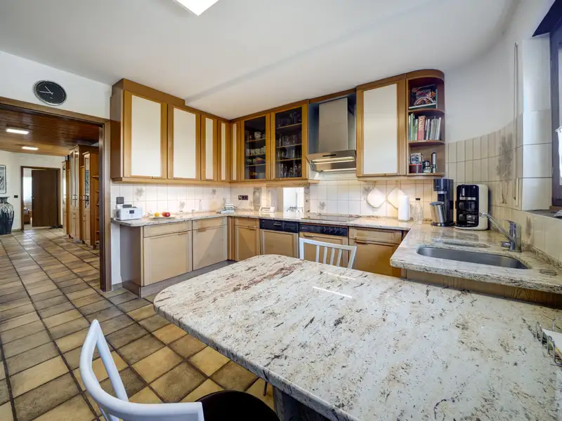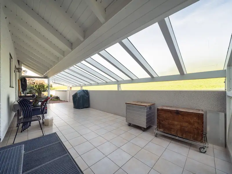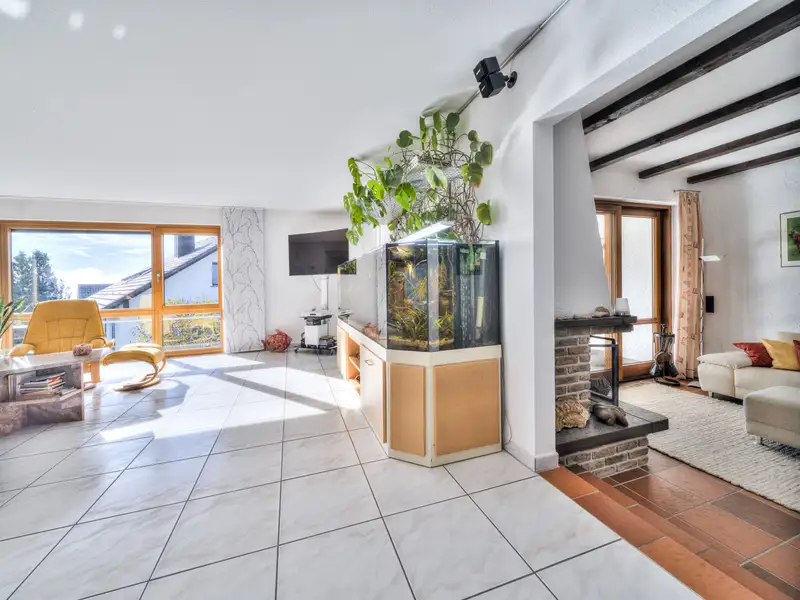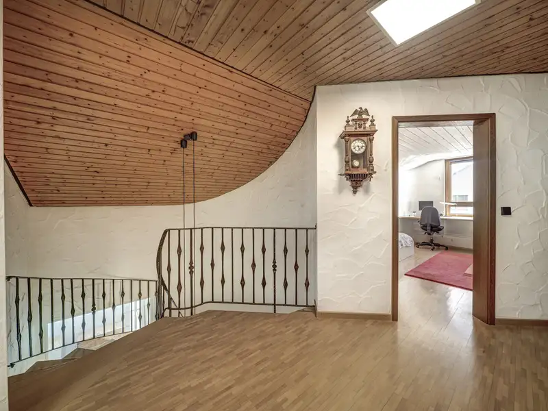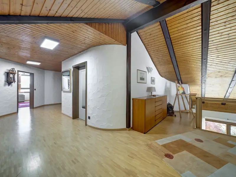 This well-kept detached house was built in 1981 on a plot of approx. 895 m² in a quiet peripheral location right next to the conservation area. The municipality has been a recognized climatic health resort since 2013, which further enhances the quality of living. The property offers approx. 231 m² of living space, spacious living with a clear layout and numerous possible uses - both for families and for all those who value sufficient space and a natural environment.