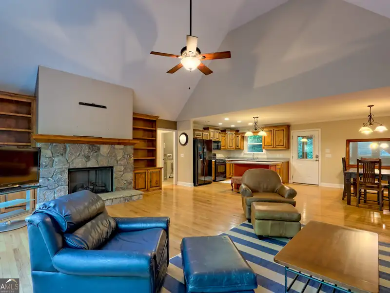 - Open floor plan with vaulted ceilings
