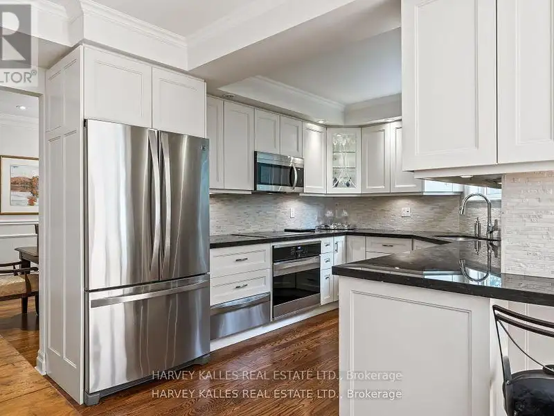 - Kitchen with stone counters and stainless appliances